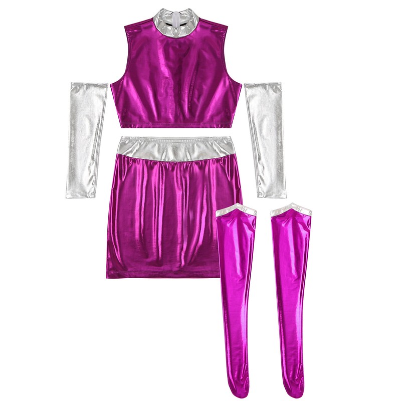 Set Include: 1Pc Crop Top, 1Pc Skirt, 1 Pair Sleeves, 1 Pair Stockings