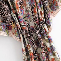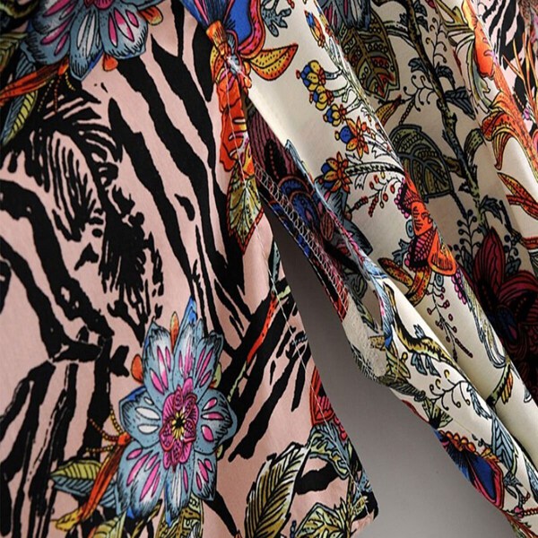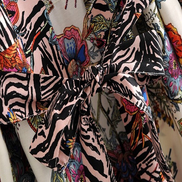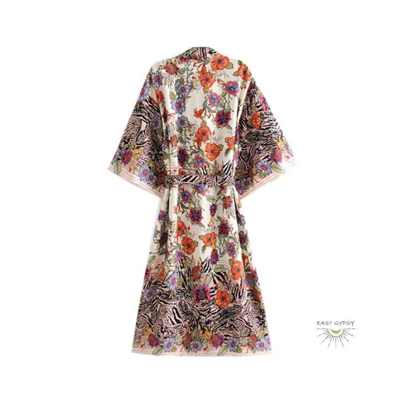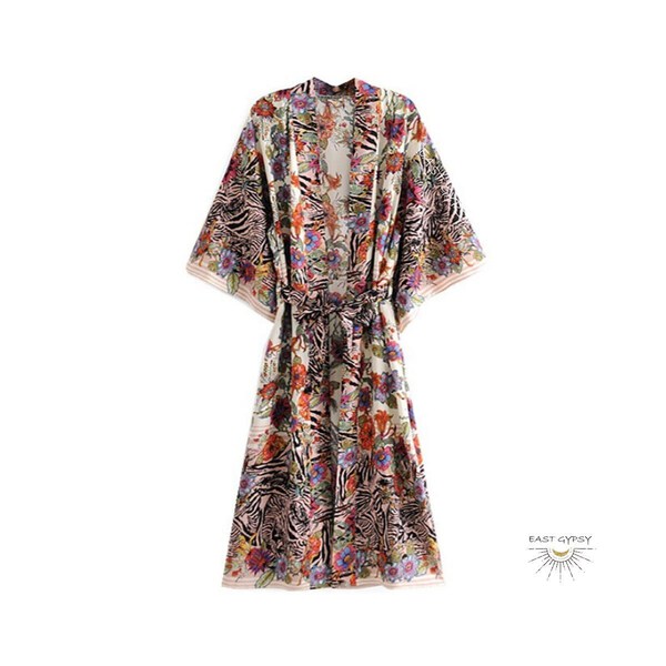 Exotic Floral Zebra Long Boho Kimono Robe, Boho Lounge Wear, Maxi Dressing Robe, Boho Bathrobe, Robes for Women, Hippie Coverup, House Robe