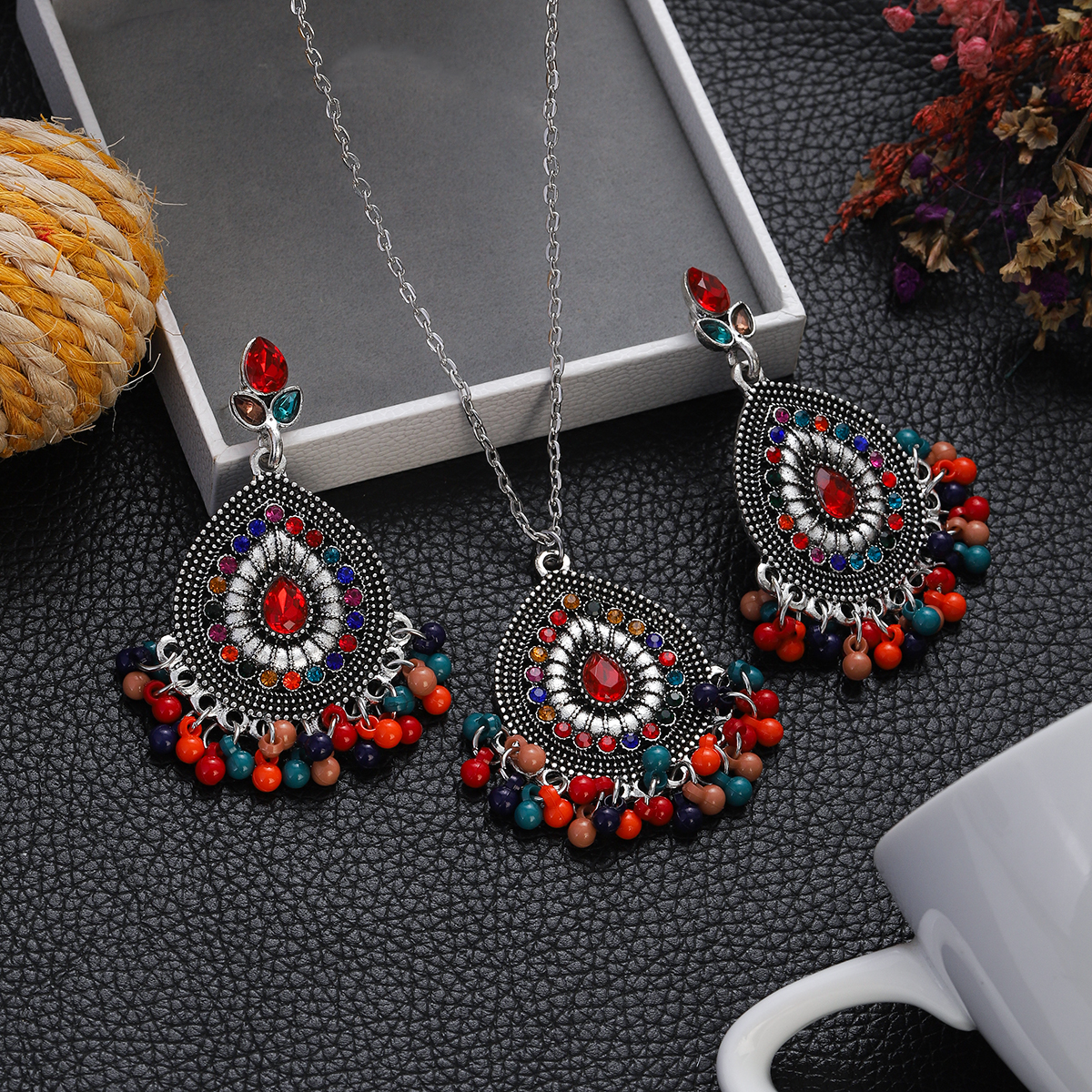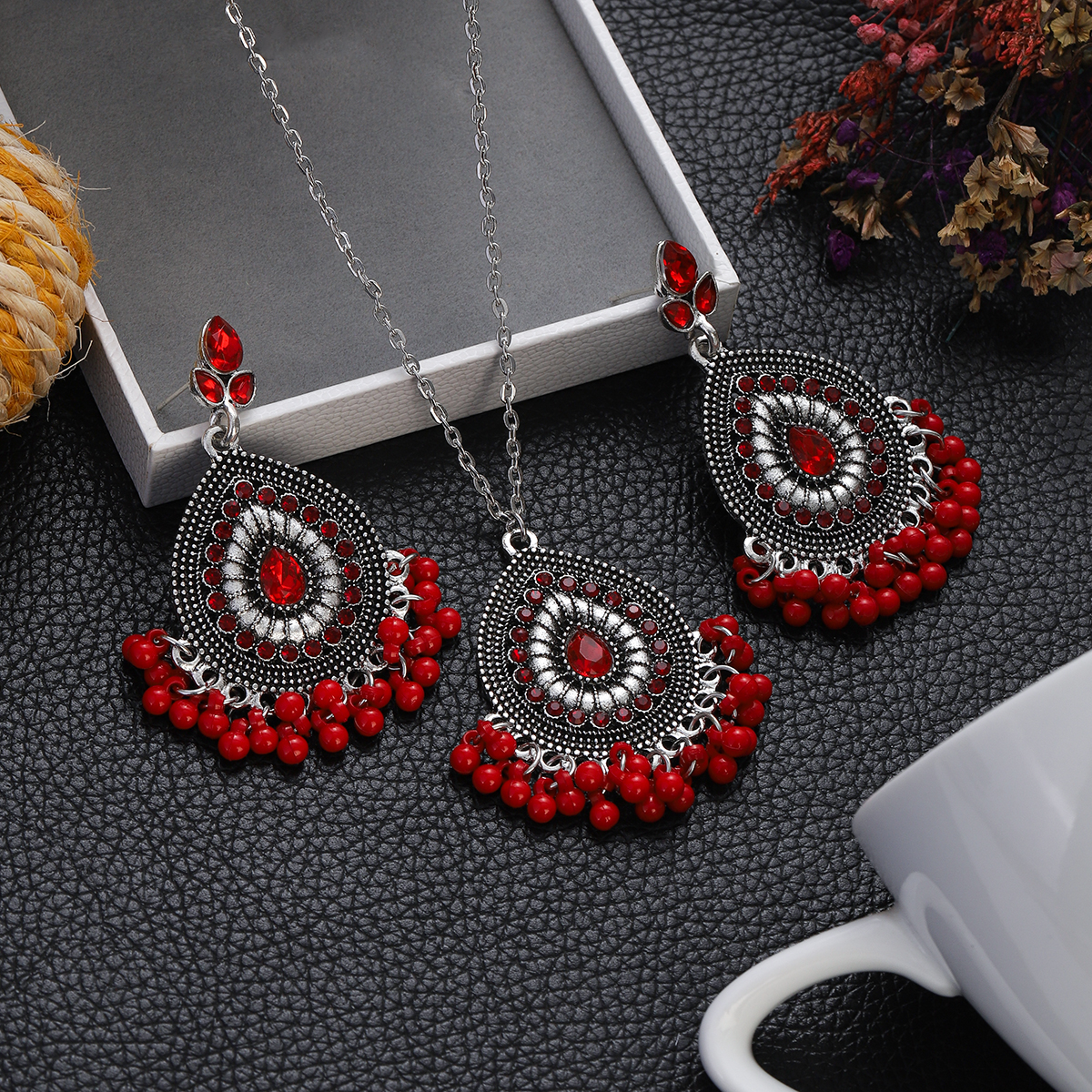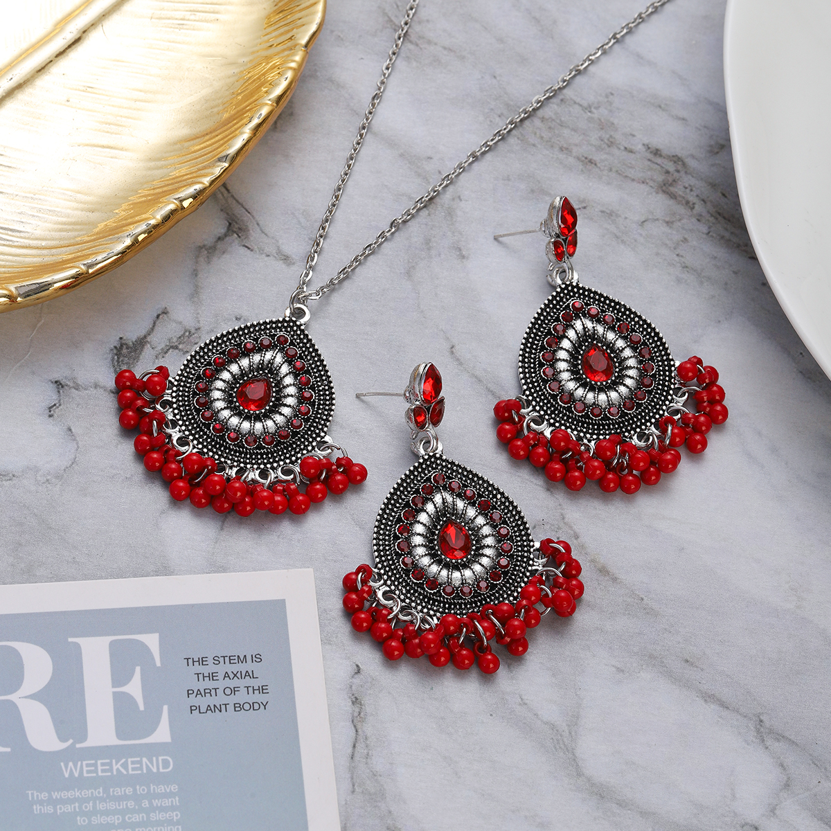 Package Included: 1 Pair Earrings + 1 Piece Necklace