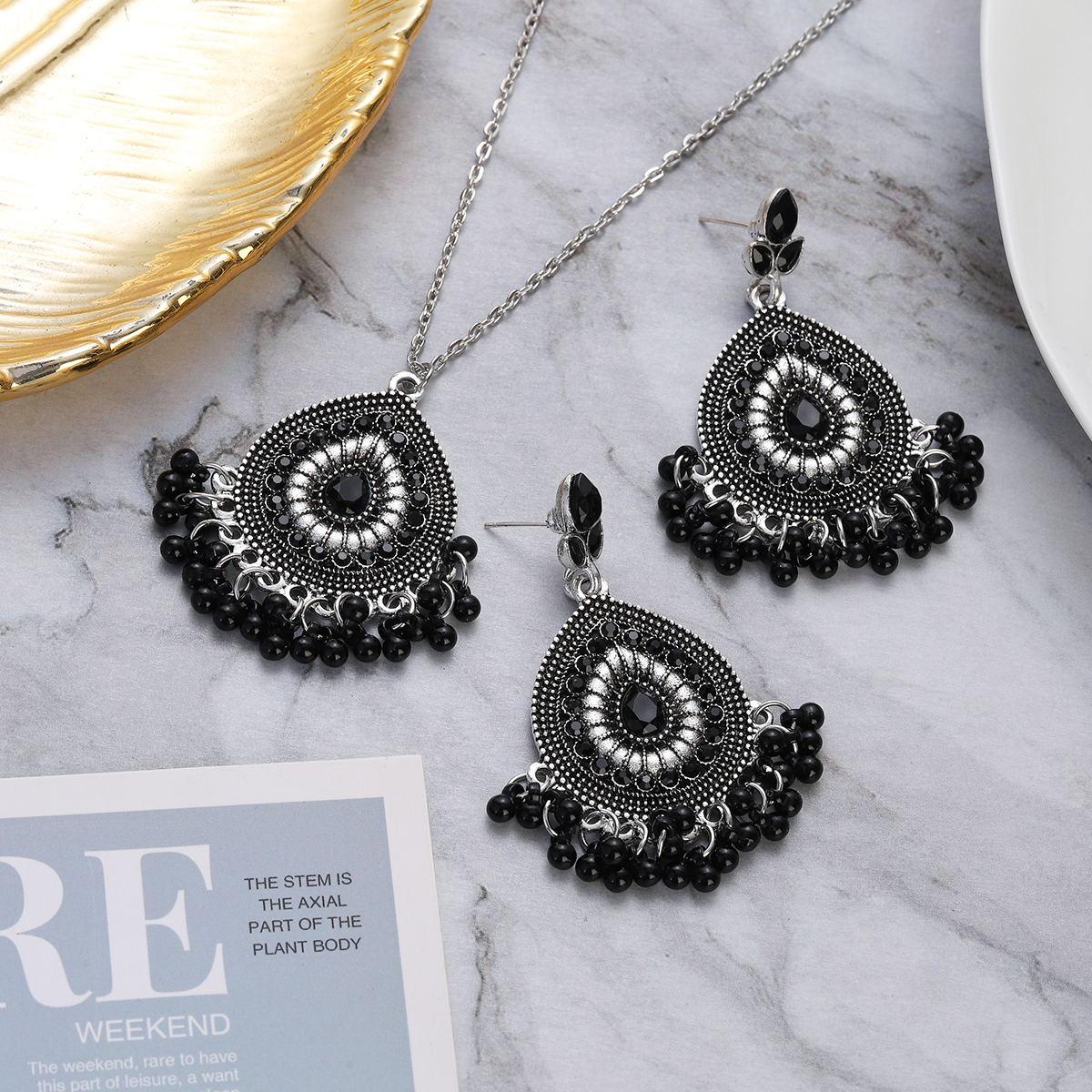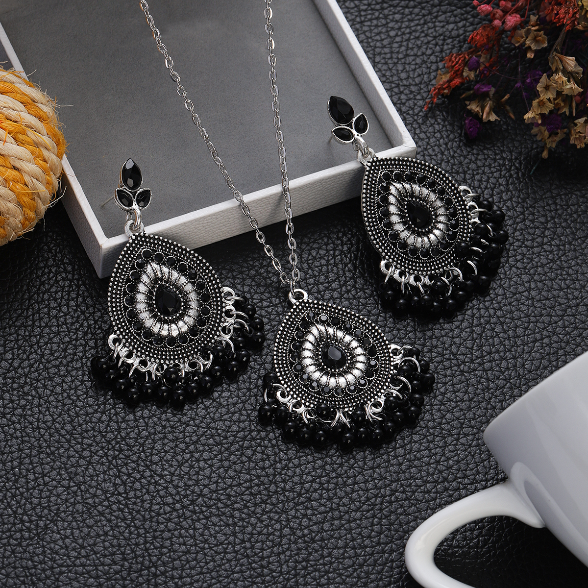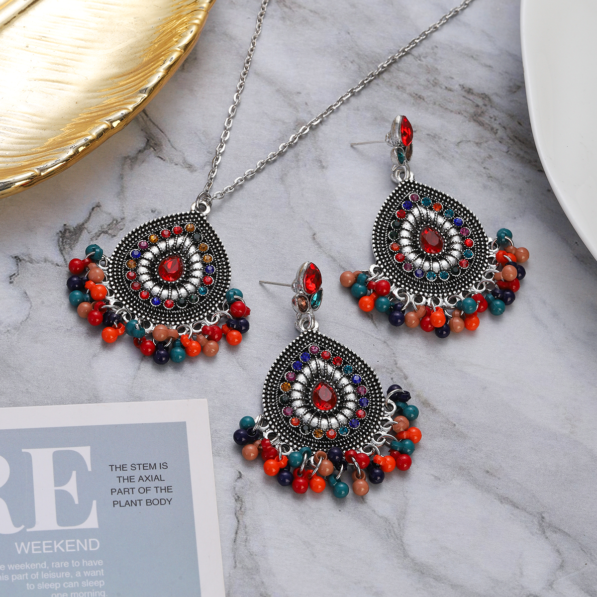 Package Included: 1 Pair Earrings + 1 Piece Necklace