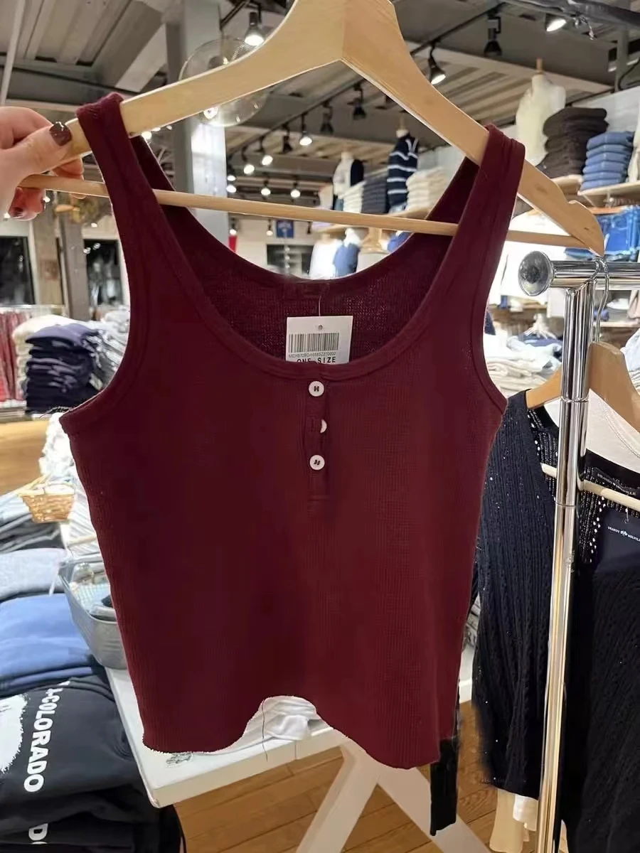 Tank Tops Casual Waffle Crop Top Sleeveless Women's Y2K Streetwear Fashion Shirt