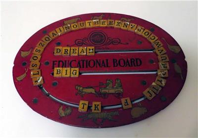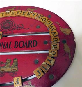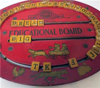 VINTAGE ANTIQUE CIRCA 1916 CRESS EDUCATIONAL CHILD'S SPELLING BOARD. Condition is Used and in very good CONDITION! Some light wearing of the red coating on the outside circle of the board. No holes or breaks in the front or back of the board as shown in the attached pictures. Letters are all INTACT and move freely around the board. CONTAINS 44 LETTERS.Measures 10 inches in diameter.WHAT A GENIUS CREATION FOR AN EDUCATIONAL LEARNING TOOL FOR KIDS FROM THE EARLY 1900s!!FOR SOMETHING HELD AND USED BY NUMEROUS CHILDREN OVER THE LAST 100+ YEARS.