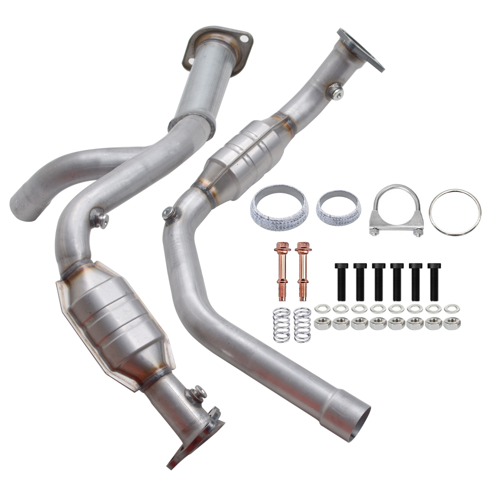 Specification: 50469 Body Height: 4.125 in Body Length: 9 IN Body Material: Stainless Steel Body Shape: Round Body Width: 4.15 IN California Certified: No Converter Quantity: 2 Inlet 1 Type: 3 Bolt Welded Flange Inlet 2 Inside Diameter: 3.625 in Inlet 2 Type: 3 Bolt Loose Flange With Spherical Flare Inlet Inside Diameter: 3.625 in Inlet Quantity: 2 Outlet 1 Type: 2 Bolt welded flange Outlet Quantity: 1 Outlet Type: 2 Bolt welded flange Overall Length: 40 IN Oxygen sensor location: Post Catalyst Substrate Material: Ceramic Fitment: 2007-2008 Chevrolet Avalanche 2007-2008 Chevrolet Silverado 1500 2007-2008 Chevrolet Suburban 2007-2008 Chevrolet Tahoe 2007-2008 GMC Sierra 1500 2007-2008 GMC Yukon 2007-2008 GMC Yukon XL 1500 For 4.8 5.3 6.0L Engines Package Included: 2x Catalytic Converter Caution: Converters are designed to last the life of a vehicle. If your converter needs to be replaced it may be due to an emissions error/problem in your engine tuning. Converters that overheat due to engine problems may turn blue or bronze. These problems must be corrected BEFORE installation of a new converter. Any modifications of any kind will void all warranty coverage for this item. Warranty is voided if catalytic converter substrate is melted or broken; this is due to an issue with the car itself and not the catalytic converter. Due to its size and shape it may encounter cosmetic flaws during its stocking and shipping process. The powder coating finish is designed to add shelf life by minimizing surface scratches which may deteriorate over time due to temperatures reached once in use. Products damaged as a result of abuse, misuse, improper repair, improper installation, alteration or modification will not be covered by the warranty. O2 sensors must be replaced when you replace the converter or warranty will be void. We have determined that failure of either the front O2 sensor (the front wide-band sensor), also known as an Air-Fuel Ratio Sensor or the read downstream sensor, can trigger a false P0420 code. Both sensors should be replaced with you replaced the converter. Note: This product is not legal for sale or use in California, Colorado, New York and Maine due to state emissions regulations.