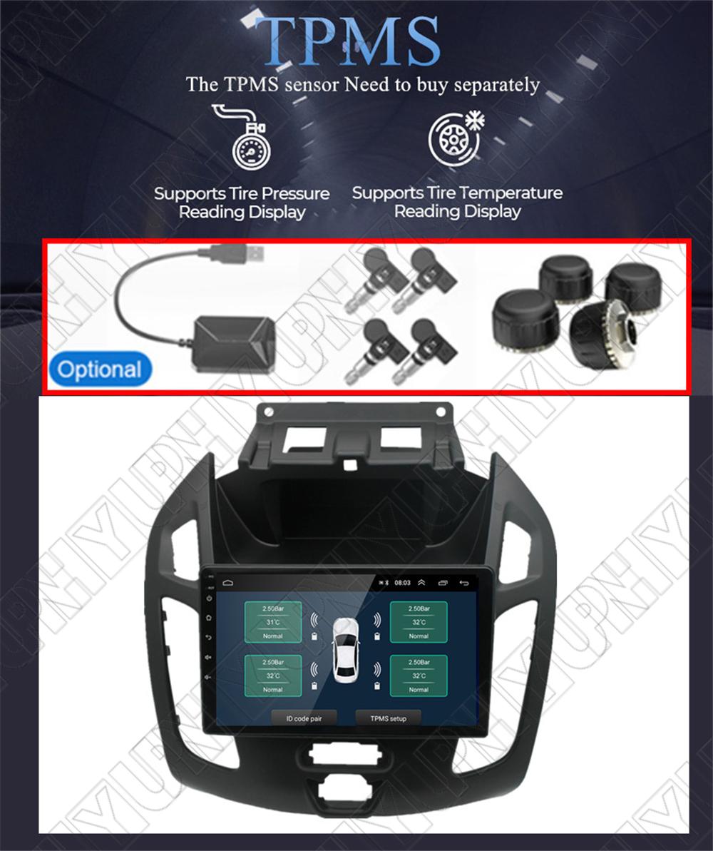 Additional | - Textbook: Could change font, font color, background color, bookmark, reading E-book while listening music - Photo Viewer: Support JPS, BMP, PNG, GIF etc. format. play by revolve, Powerpoint Support 4096*4096 Pixels - Wallpapers: 5 live wallpapers, 17 standard wallpapers, support DIY wallpaper from Gallery - APK Installer: Support Android Package installer - Support Torque Pro(OBD2 &Car): Yes, you can connect a Bluetooth/WIFI OBD2 Scanner Tool(Bluetooth version ≥ 4.2) to use this function - Support Mirror Link function: Yes, support wireless and wired screen mirroring from iPhone and android smartphone - Support TPMS: YES (Not Included) -Support Steering Wheel Control;Yes |