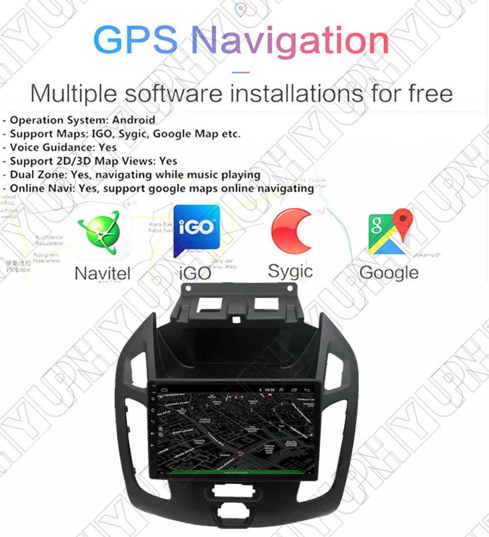 GPS | - Operation System: Android 13 - Support Maps: IGO, Sygic, Google Map etc. - Voice Guidance: Yes - Support 2D/3D Map Views: Yes - Dual Zone: Yes, navigating while music playing - Online Navi: Yes, support google maps online navigating |