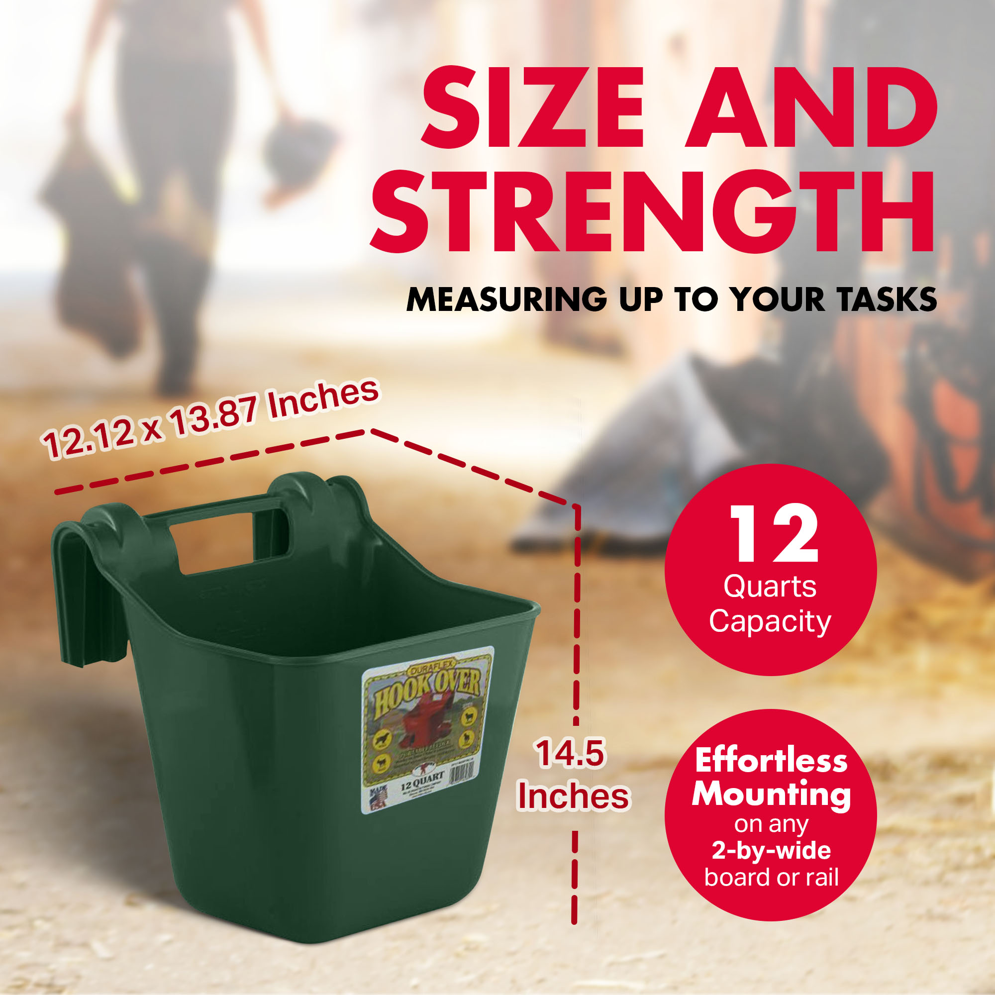 Crafted with precision, this livestock accessory features an ergonomic design revolutionizes feeding solutions. Equipped with sturdy hooks on the back, this plastic bucket seamlessly mounts on any 2-by-wide board or rail, ensuring a hassle-free experience. Engineered for resilience, the bucket is constructed from a high-grade polyethylene plastic, making it ultra-durable. Resisting impact and adept at fending off warpage and stress cracks, this feeder guarantees longevity in the face of rugged use.