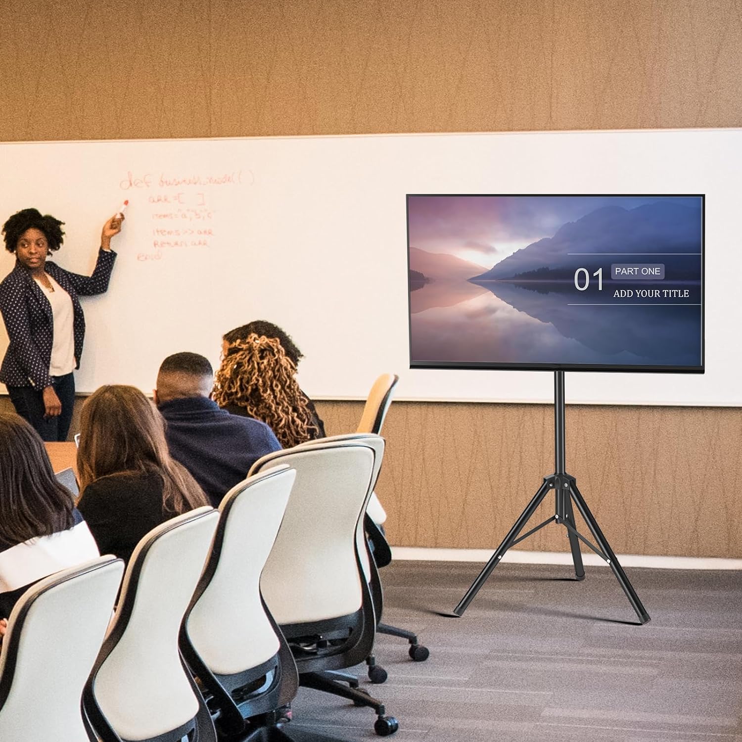 【Easy Installation】The Tripod TV Stand includes all necessary accessories, with most components pre-assembled. It takes only 5 minutes to finish. The tv floor stand comes with a 1-year warranty. Feel free to contact us if you encounter any issues while using the product, and we will promptly assist you in resolving any problems.