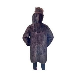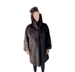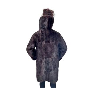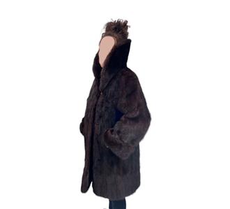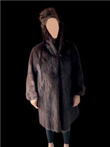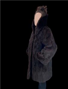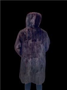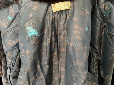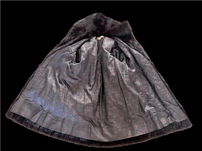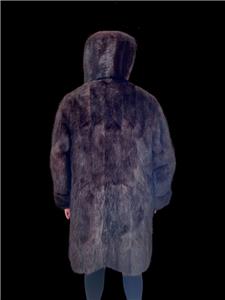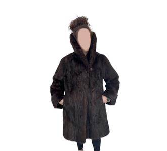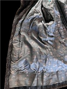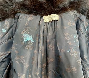 STUNNING VINTAGE BROWNISH BLACK 3/4 LENGTH HEAVY MINK COAT w/ LARGE COLLAR. SKINS ARE SOFT AND PLIABLE. A 3/4 LENGTH MINK COAT EXUDES TIMELESS ELEGANCE SEAMINGLY BLENDING LUXURY AND WARMTH. CRAFTED FROM THE FINEST MINK FUR, THIS COAT GRACEFULLY STRIKES A BALANCE OF SOPHISTICATION AND PRACTICALITY. THE ONLY THING I SEE WRONG, IS SOME RESIDUE FROM A HANGAR IS ON THE INTERIOR. I BELIEVE IT WILL COME OFF, AS I GOT SOME OFF BY RUBBING IT WITH MY FINGER NAIL. IT WEIGHS APPROX. 7 POUNDS. SEE SOME APPROX. DIMENSIONS: