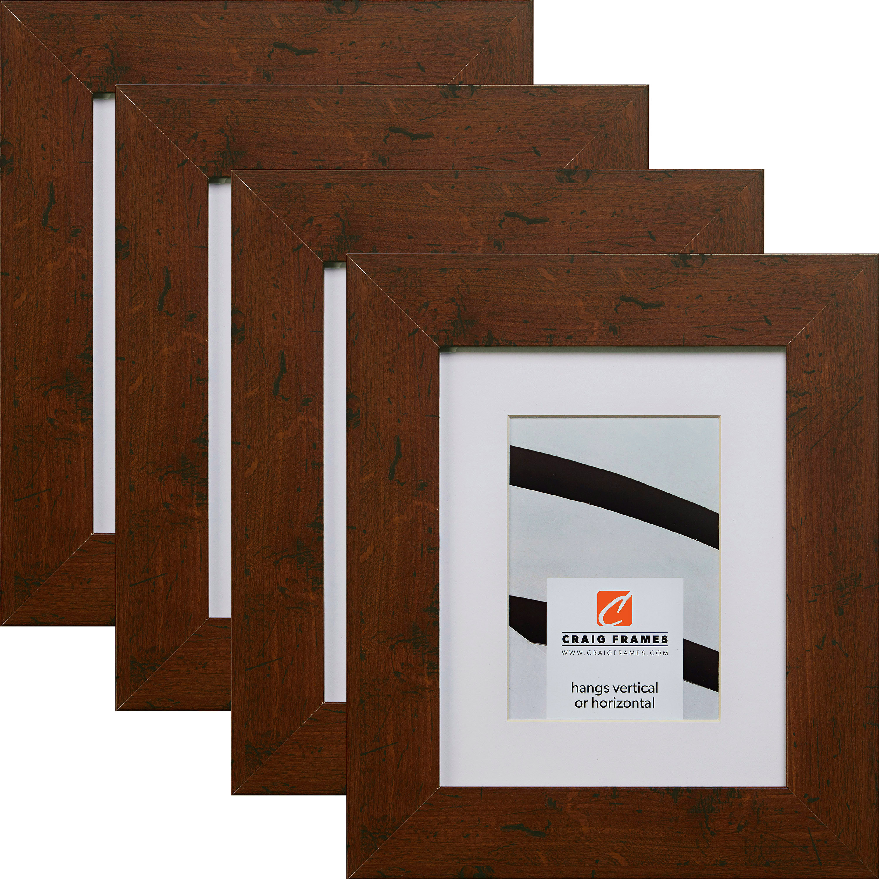 With clean rectilinear lines and square profile, this picture frame is ideal for most modern decor needs. The Bauhaus picture frame series features moulding with a composite wood core and laminate wrap. This sleek 1.25" picture frame comes finished in Rustic Dark Walnut. With some Smooth White matting you can elevate your prints to the next level. Sharp and bold, this Bauhaus brown picture frame is a perfect combination of rustic and modern.