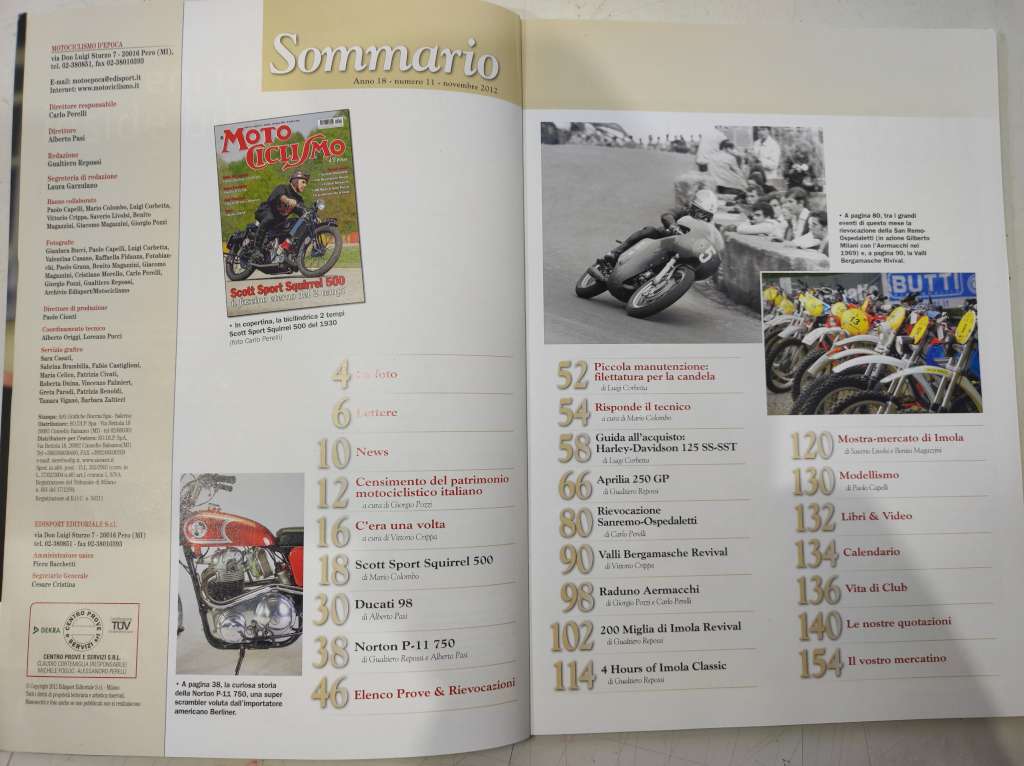 MOTOCICLISMO D`EPOCA11-2012 HARLEY DAVIDSON 125 SS-SST DUCATI 98 ASTE E BILANCIERI SCOTT SPORT SQUIRREL
