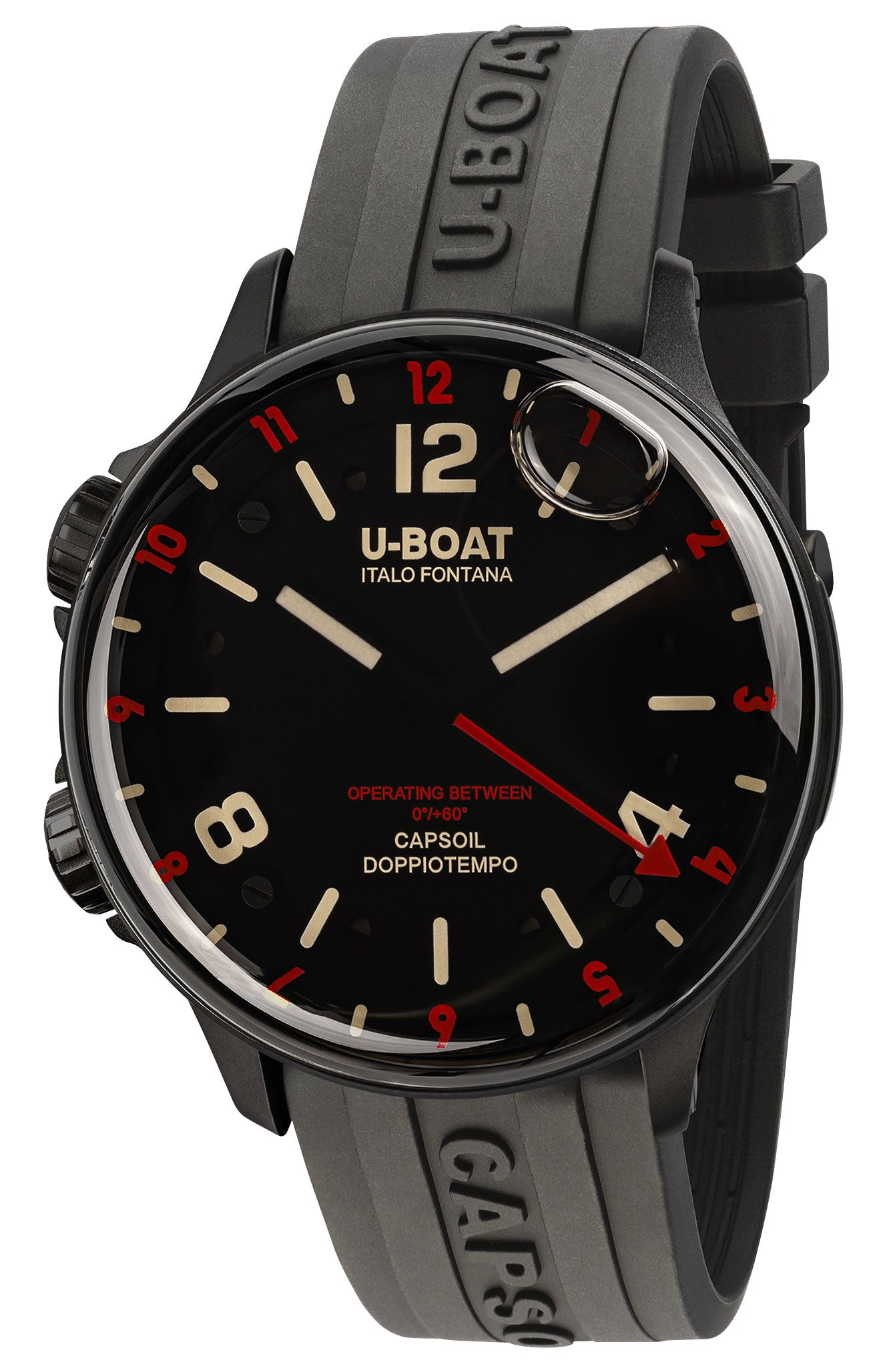 U-Boat Capsoil Doppiotempo Black DLC Steel Black Dial Black Rubber Strap Mens Watch Model# 8841