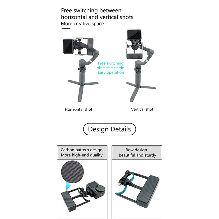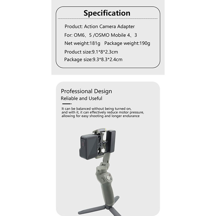 Universal Phone Gimbal to Sports Camera Adapter Set for OSMO 6/5/4/3 to Action 4