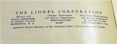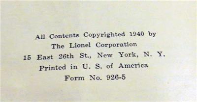 1940 LIONEL INSTRUCTIONS FOR ASSEMBLING AND OPERATING LIONEL TRAINS MANUAL