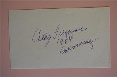 Cathy Jane Ferguson (born July 22, 1948) is an American former competition swimmer, Olympic champion, and former world record-holder. She competed at the 1964 Olympic Games in Tokyo, Japan, where she received the gold medal for winning the women's 100-meter backstroke, and another gold as a member of the first-place U.S. team in the women's 4×100-meter medley relay. Cathy Ferguson was one of six world record holders in the 100m backstroke final at the 1964 Olympics. She proved to be the best of this distinguished field by taking the gold medal with a new record of 1:07.7. Having set a world record over 200m the previous month, she thus became the record holder at both backstroke distances. She also set two world records in the medley relay the second of these coming at the Tokyo Olympics where she was a member of the winning U.S. team. Ferguson was a student at Burbank High School in Burbank, California, when she became an Olympic champion. Ferguson was inducted into the International Swimming Hall of Fame as an "Honor Swimmer" in 1978.