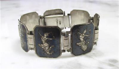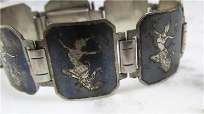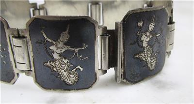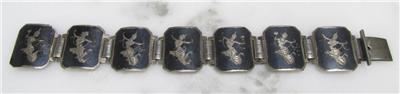 Vintage Siam Sterling Silver Black Enamel Panel Bracelet