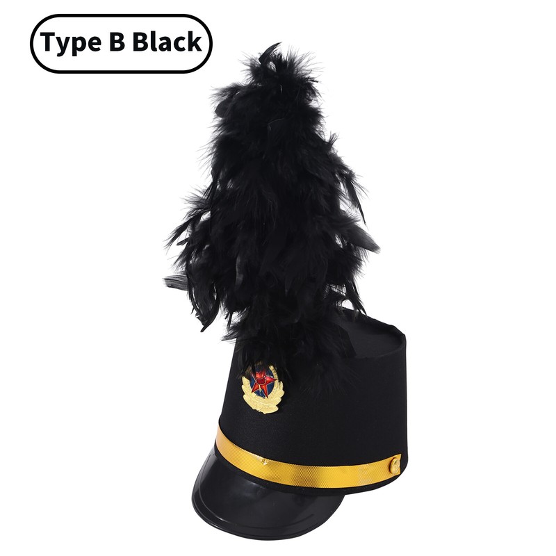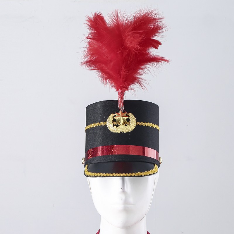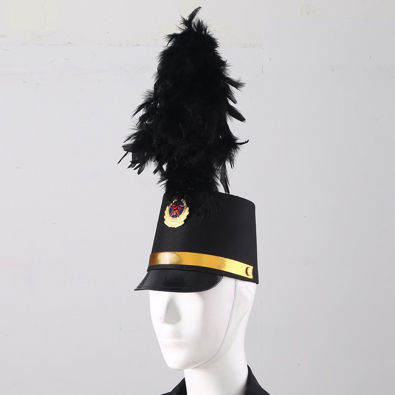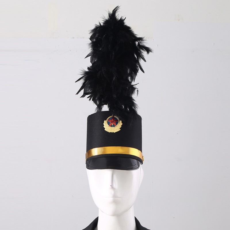 Children Adult Drum Horn Uniform Hat Band Hat Conductor Performance Hat with Feather Decor.