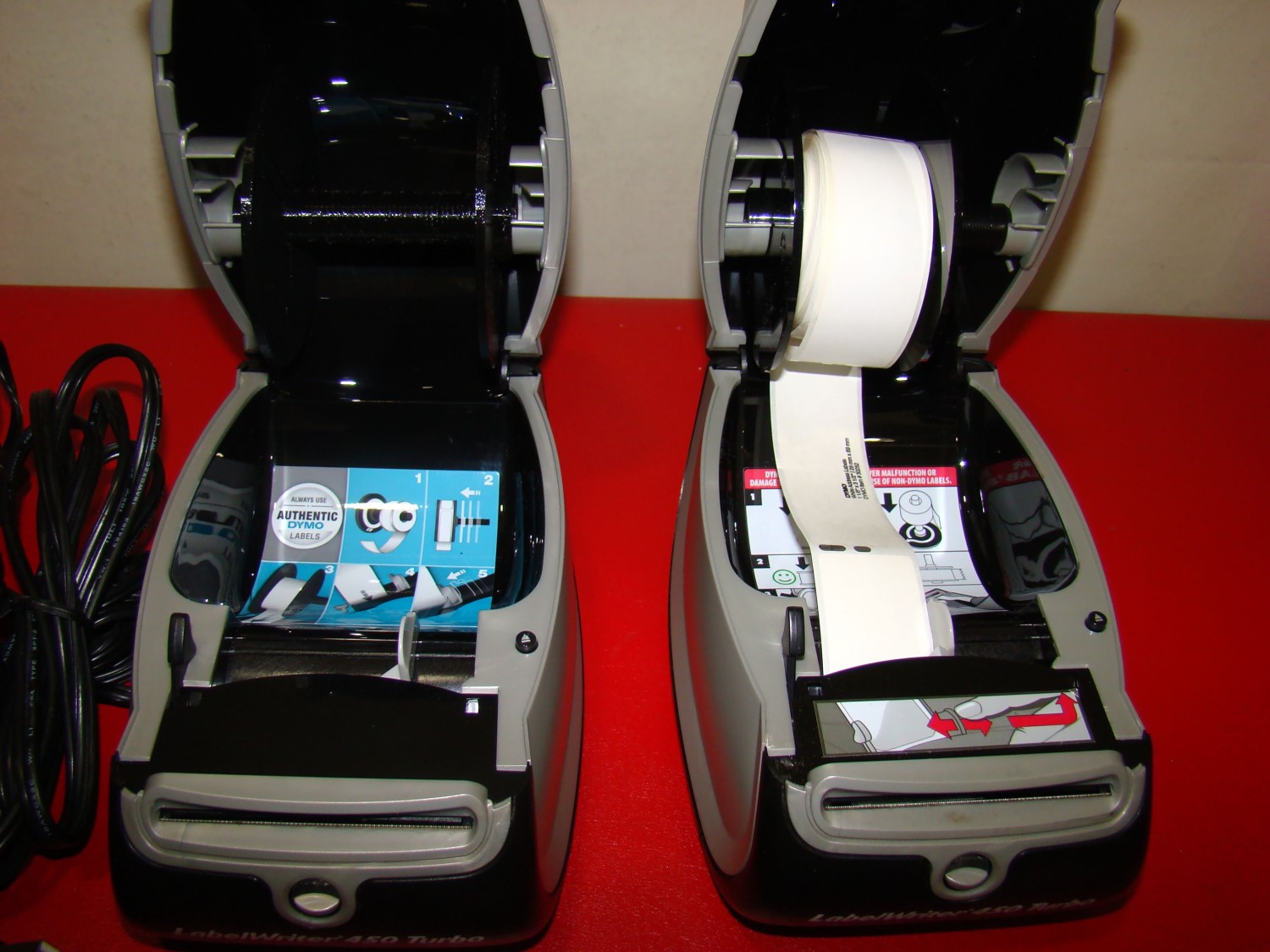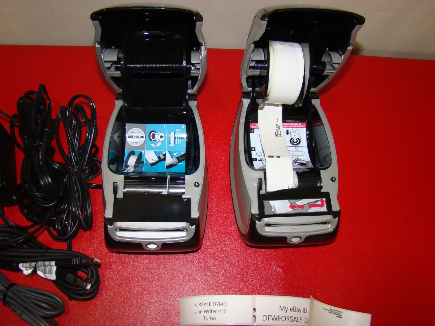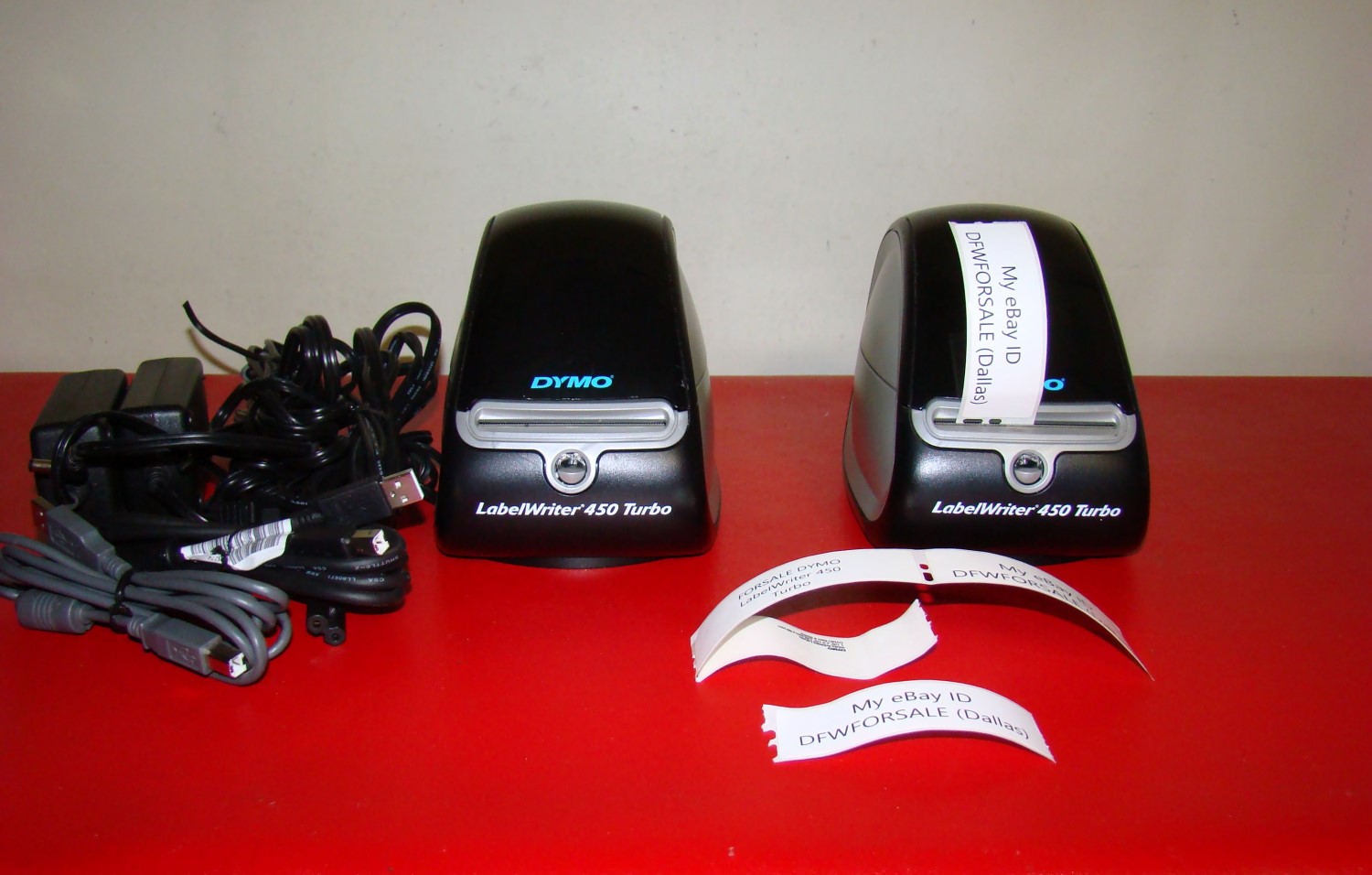 You are bidding on ONE DYMO LabelWriter 450 Turbo Thermal Label Printer + AC Adapter + Roll + USB cable TESTED WORKS. These LabelWriter 450 Turbo printer removed while working. We are displaying TWO LabelWriter printers. This Auction is for ONE LabelWriter printer. There are minor cosmetics or blemishes. We have good quantity on hand. Happy Bidding!!!