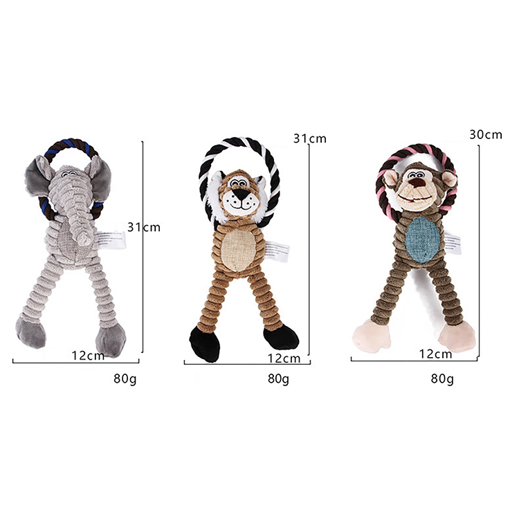 3 PCS Pet Puppy Toys Dog Squeaky Toys Lion Monkey Elephant Plush Dog Chew Toys