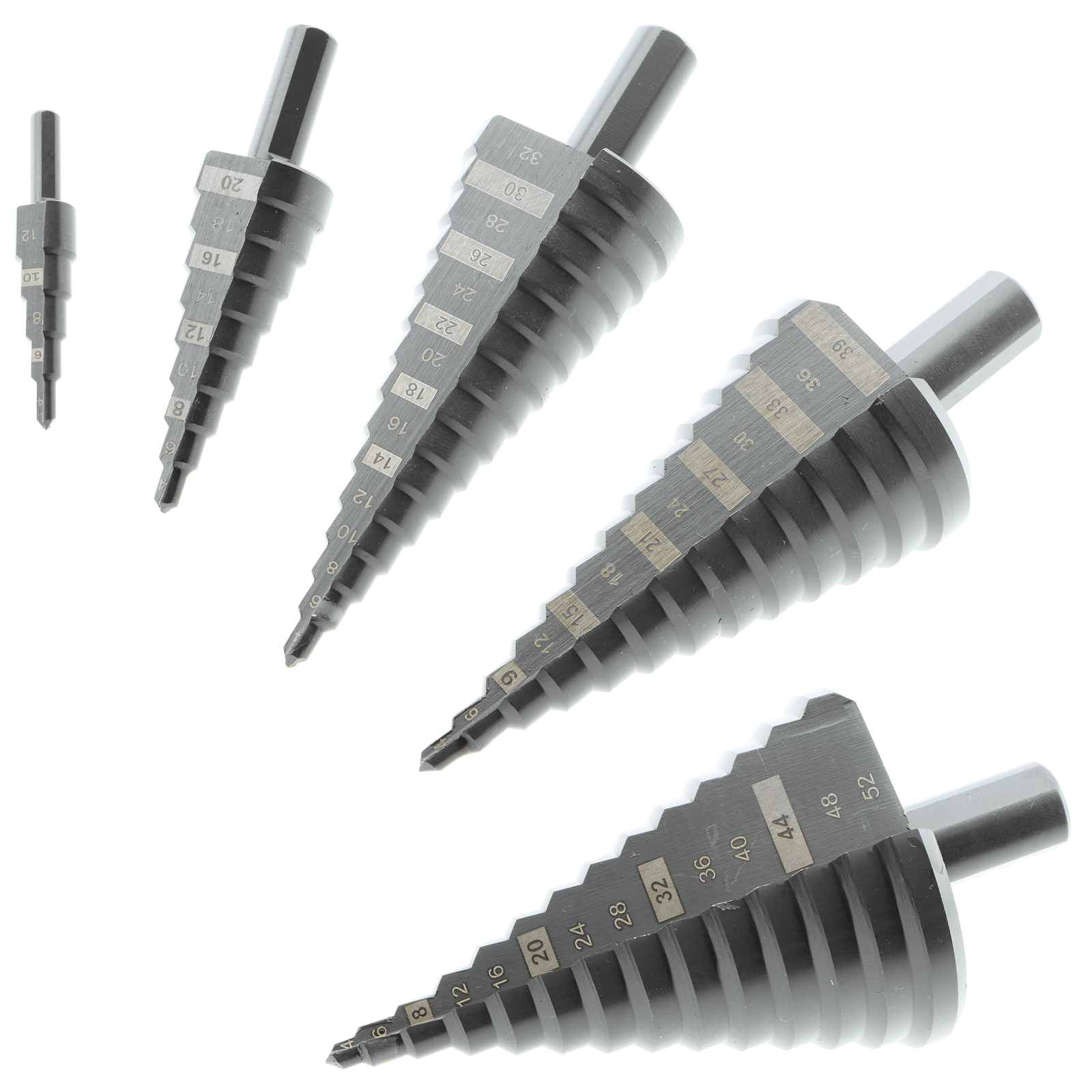 - HSS-TITAN Spiral Stufenbohrer [mm] : 4-12 / 4-20 / 4-32 / 4-39 / 4-52