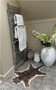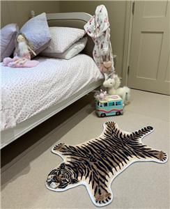 Quirky rug in the form of a Tiger skin. This faux fur rug is made from 100% Polyester and comes complete with a non slip backing. Can be used in any room of the house, perfect for childrens bedrooms. This rug is ideal for creating a statement spot in children's rooms and play areas.