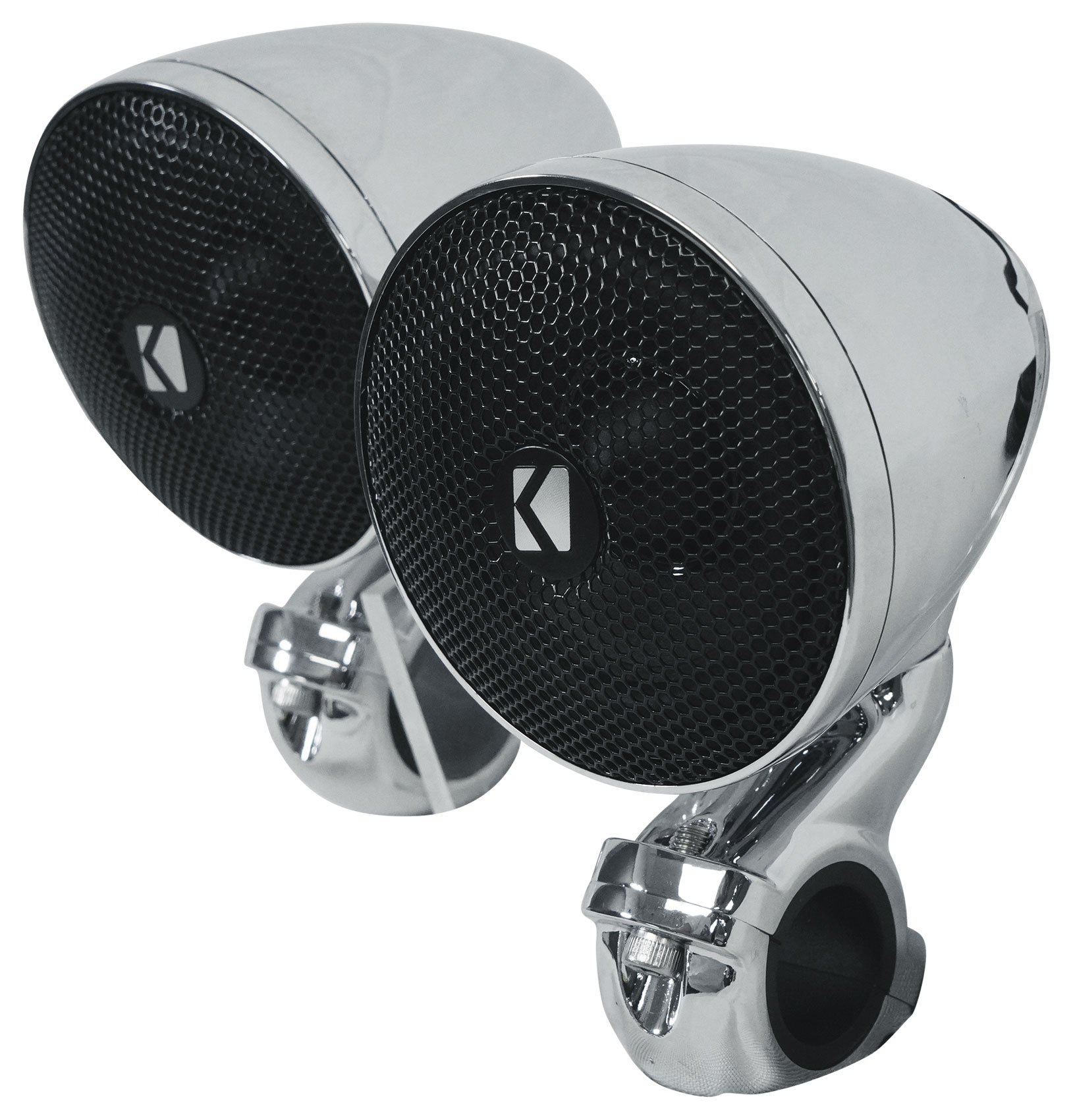These weather-proof speakers come in durable chrome or glossy black enclosures, complete with handlebar mounting hardware. Add a PXA amplifier for a complete system, meant for rough roads and rougher trails.