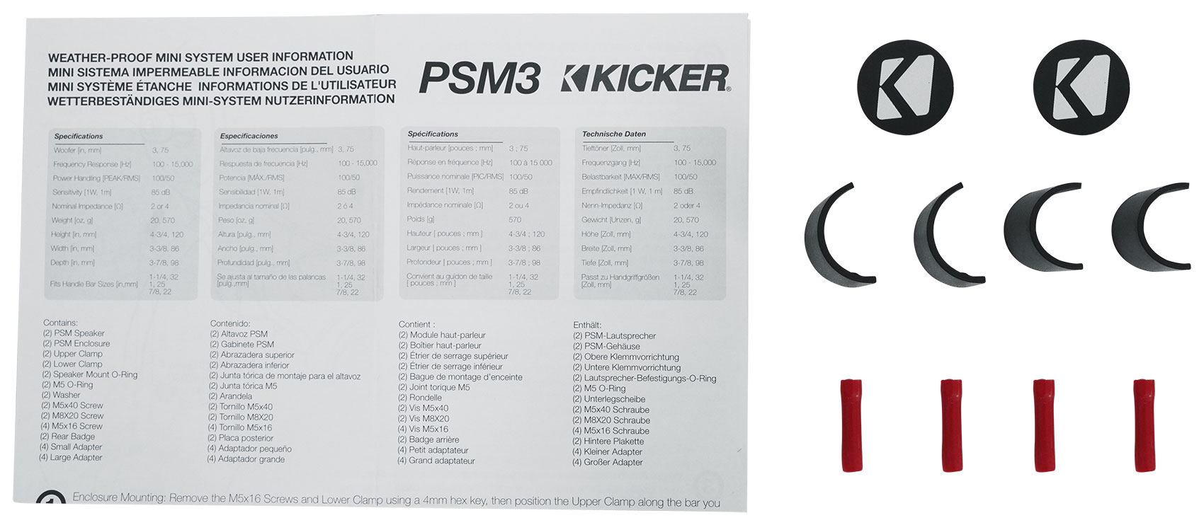 PSM Mini-Enclosed Speakers enhance your music on vehicles with handlebars but no fairing (shipped as a pair).