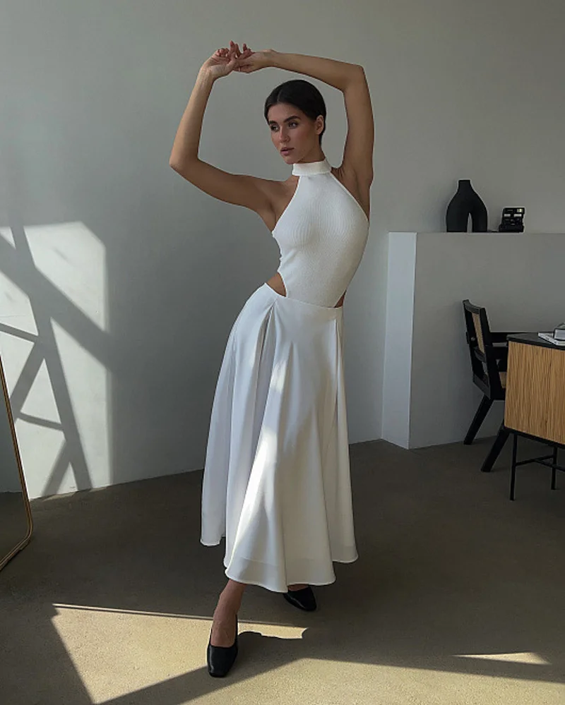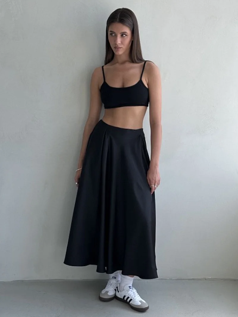 S M L Elegant High Waist Midi Skirt Loose Fashion Flare Dress Wear For Women NEW