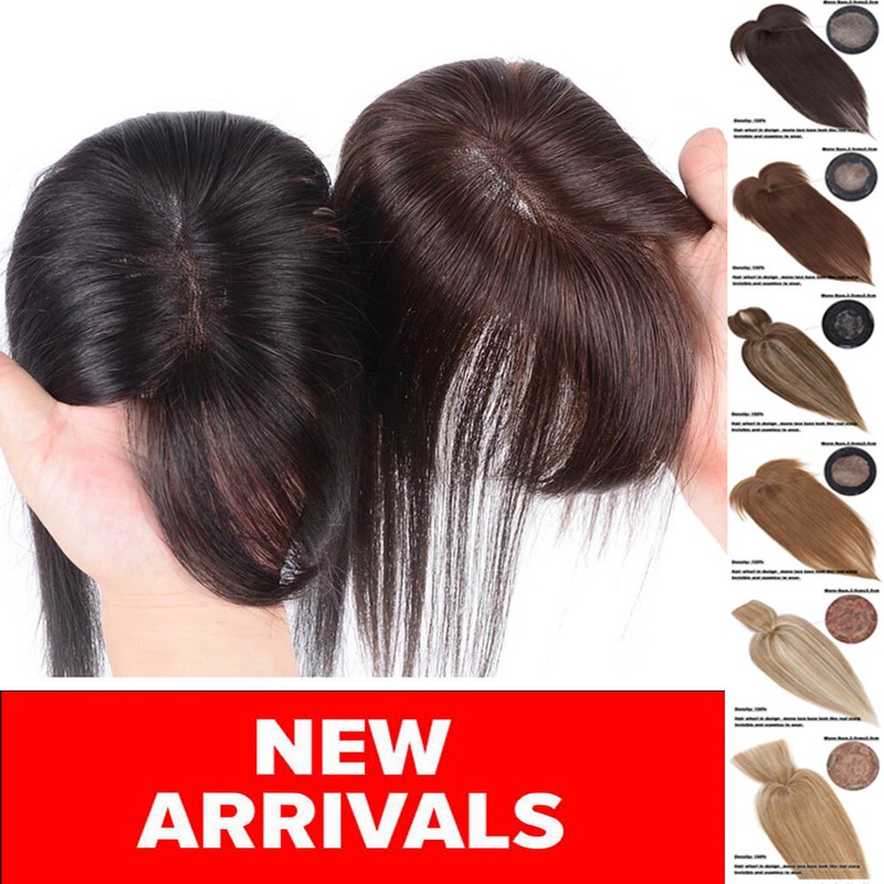 6"-18" Real Remy Human Hair Piece Topper Hairpiece Wiglet for women Free Part US