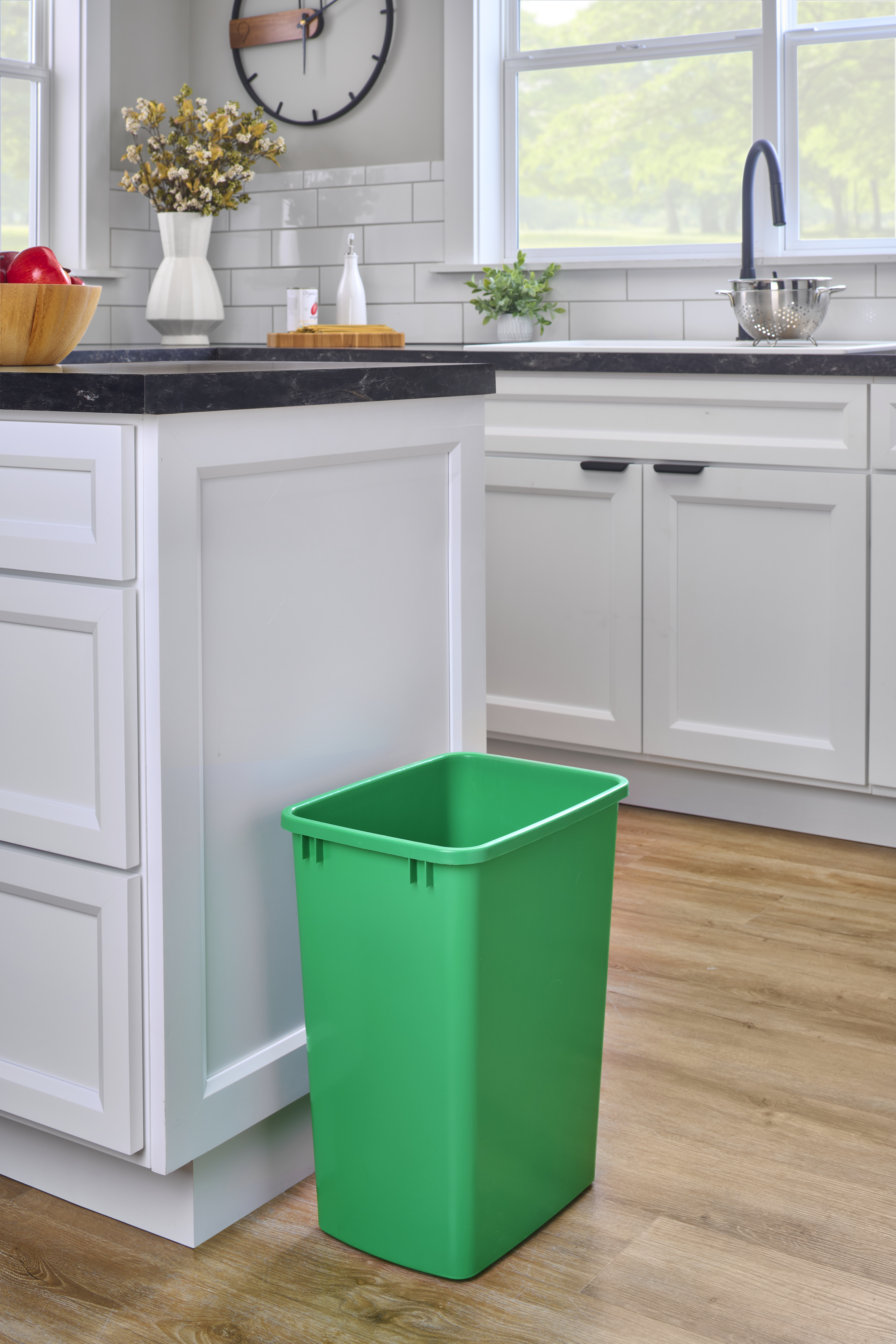 The 35 qt. Polymer Replaceable Trash Bins from Rev-A-Shelf are the perfect solution for your kitchen waste needs while being compatible with Rev-A-Shelf Pullouts. Conveniently store your trash bins tucked away in your drawers or cupboards so you can maintain your kitchen's lovely appearance, or keep the waste bins in other various locations around your apartment, home, or office to minimize waste being left out.
