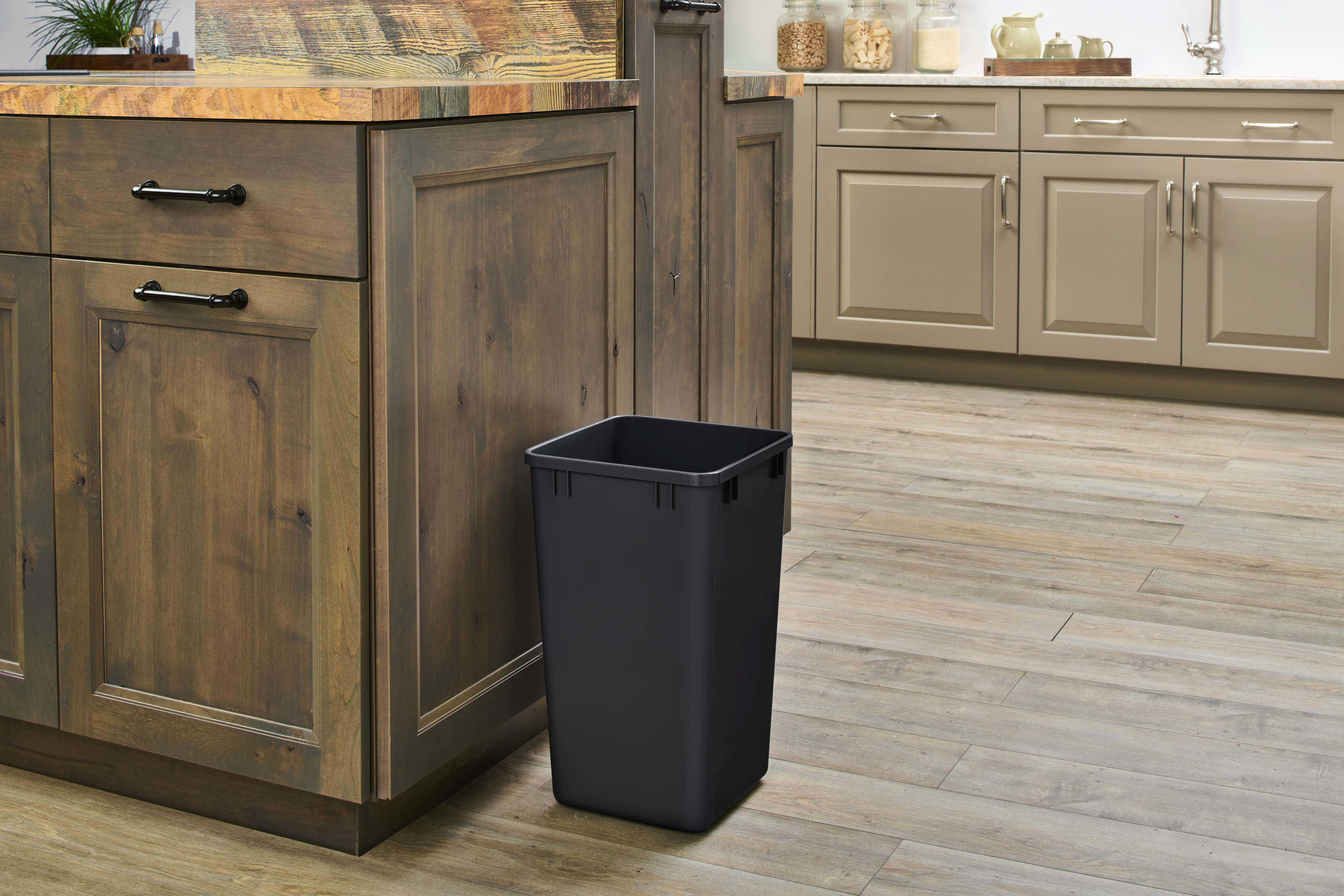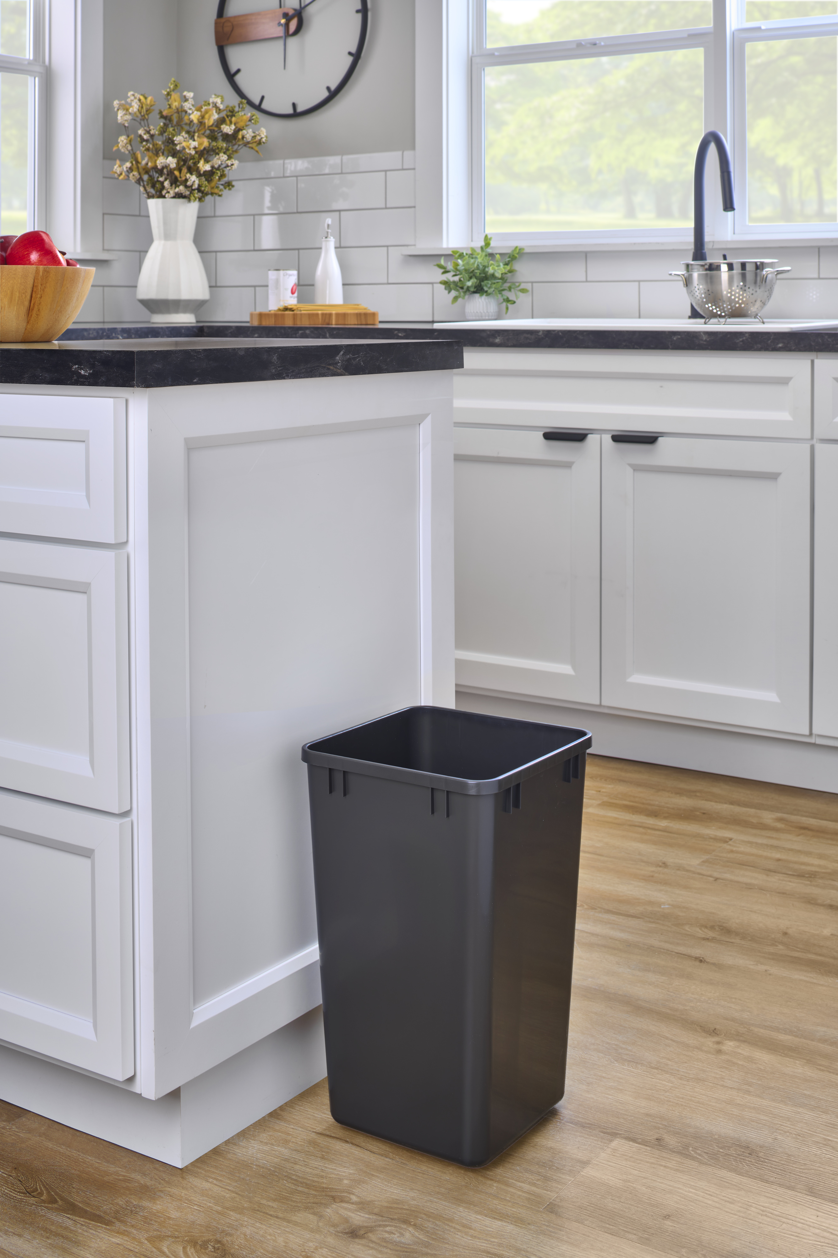 The 27 qt. Polymer Replaceable Trash Bins from Rev-A-Shelf are the perfect solution for your kitchen waste needs while being compatible with Rev-A-Shelf Pullouts. Conveniently store your trash bins tucked away in your drawers or cupboards so you can maintain your kitchen's lovely appearance, or keep the waste bins in other various locations around your apartment, home, or office to minimize waste being left out.
