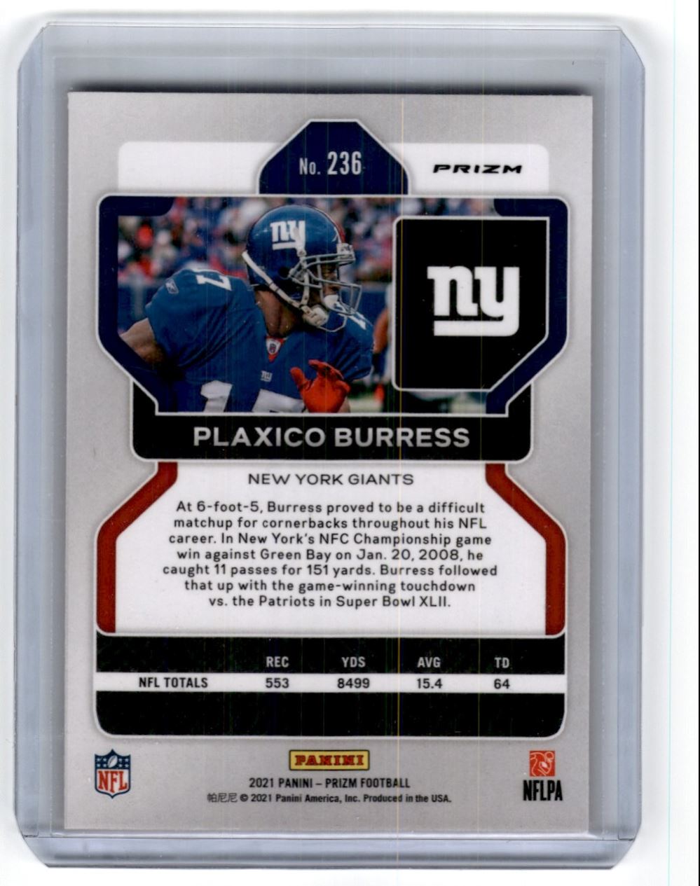 | 2021 Panini Orange Ice Prizm Plaxico Burress New York Giants #236 |