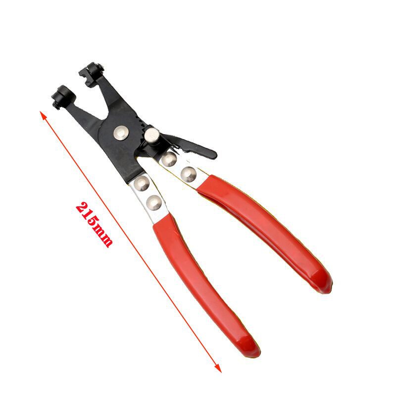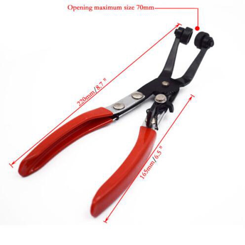 Origin : CN(Origin) Color : Red&Black Material : Carbon Steel Function : Replace The Hose Application : Multi Functional DIY Supplies : Electrical Supplies : Car/Auto Repair Characteristic: Used to compress spring-type hose clamps in tight areas Locking ratcheting action holds clamp open for removal and installation Convenient tool for shop use Jaws are bent at a 45 degree angle and plier tips swivel to allow easy access to confined areas Specs: Material: carbon steel Red color