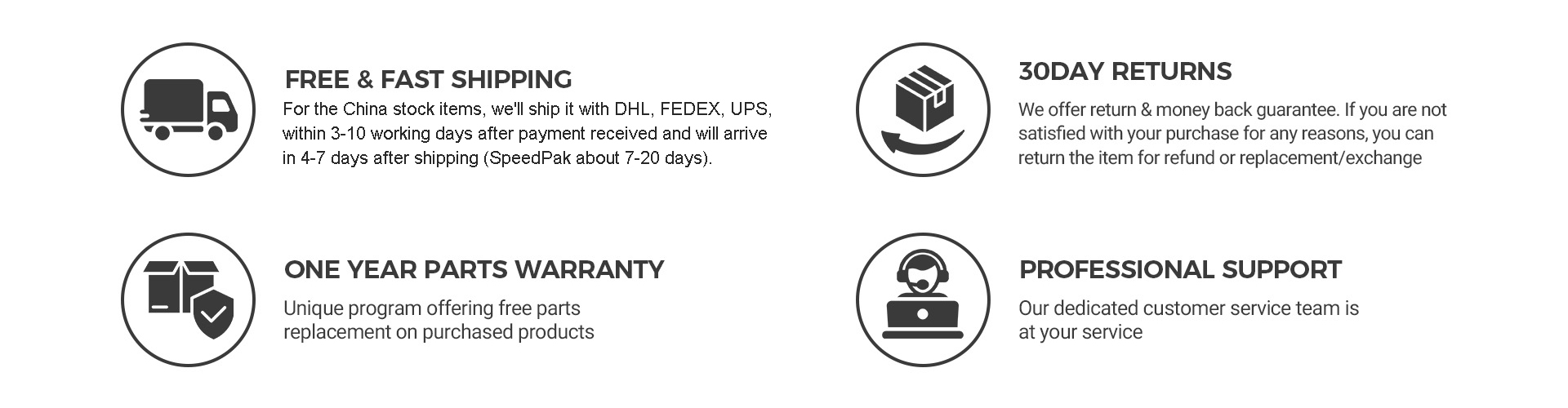 1. Should any delay happen due to the logistics company and local customers or duties will inform you.