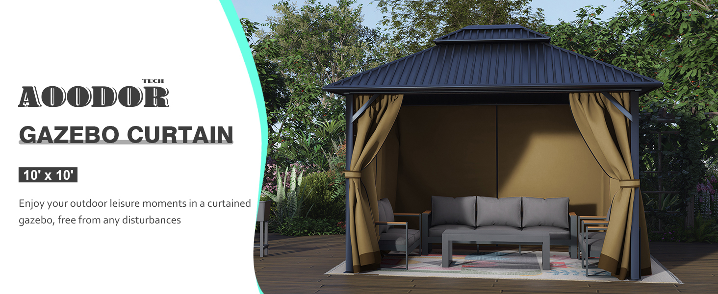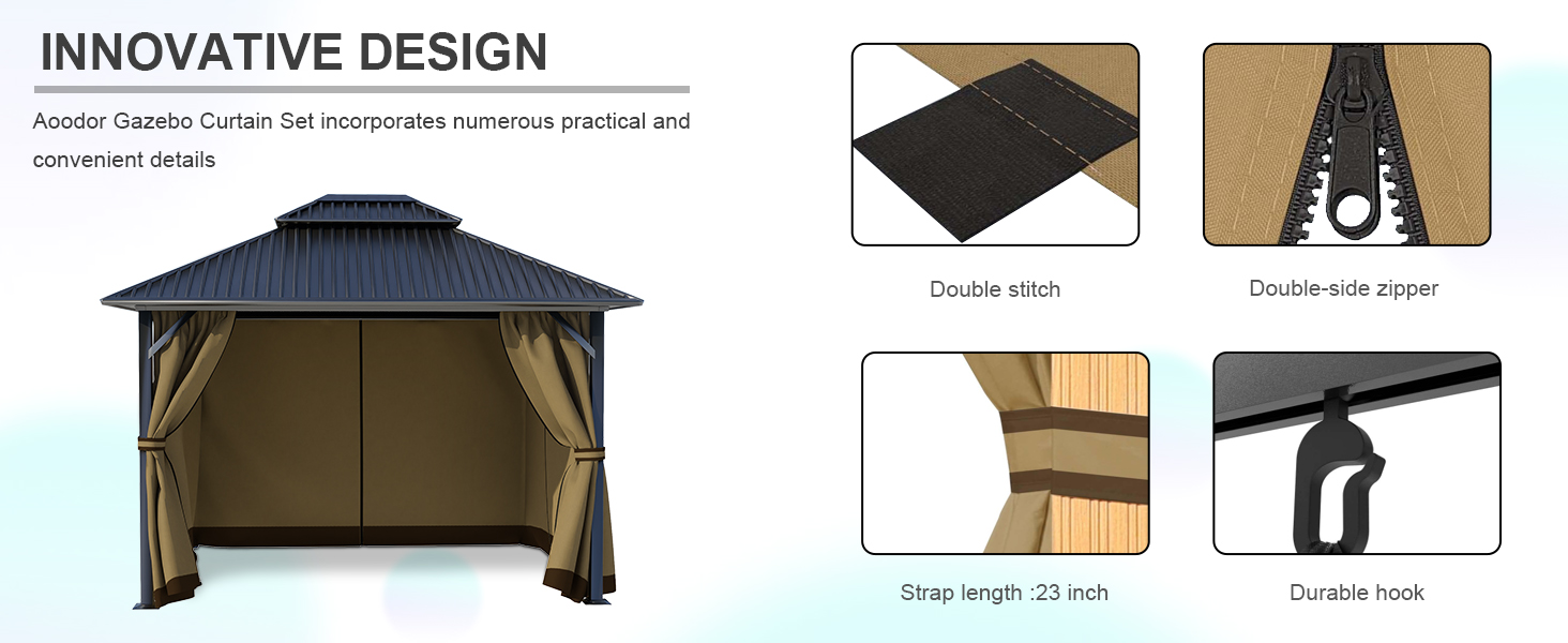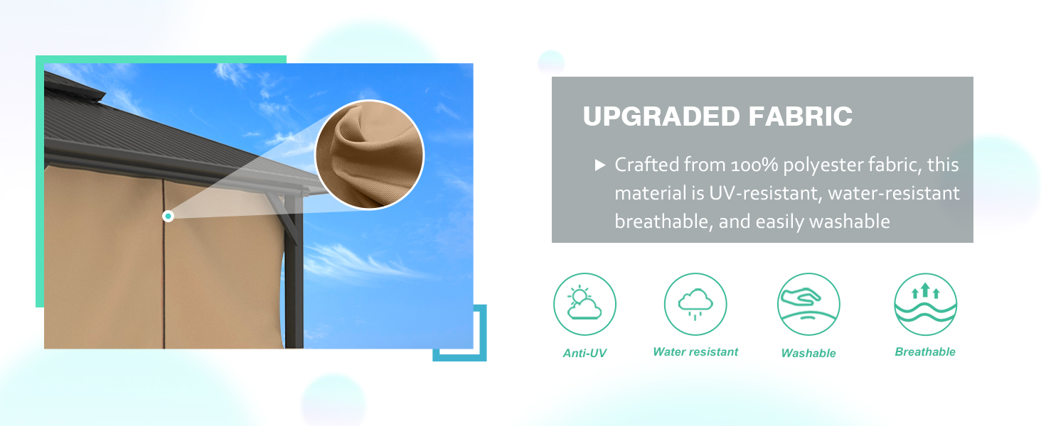 【DURABLE MATERIAL】 The gazebo replacement curtains are made of durable 100% polyester, which is waterproof and UV resistant. The sturdy and high-quality material prevents tearing and keeps rain and wind out of the rest area.