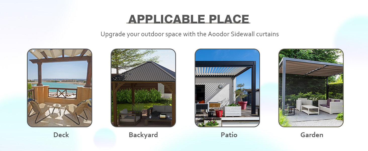 【UNIVERSAL DIMENSION】10 ft (L) x 6.9 ft (W)/11 ft (L) x 6.9 ft (W)/11.55 ft (L) x 6.9 ft (W)/12 ft (L) x 6.9 ft (W) 4-panel universal sidewall gazebo curtains are designed to perfectly complement most 10ft x 10ft /10ft x 12ft/10ft x 13ft /12ft x 12ft gazebos. We kindly advise you to measure your gazebo prior to making a purchase.