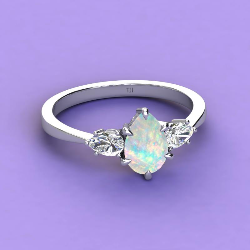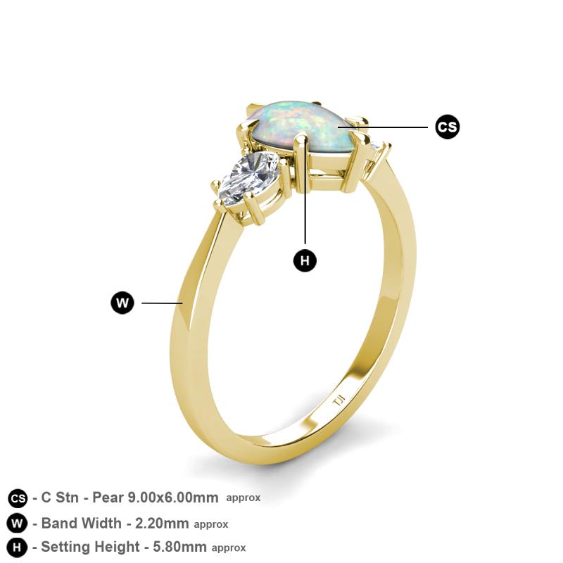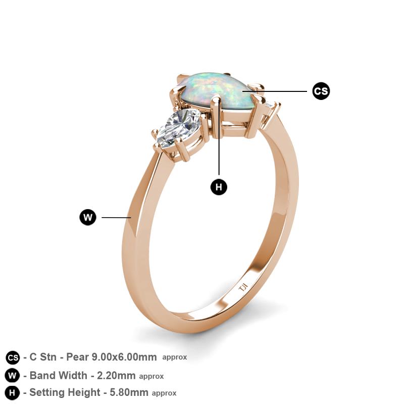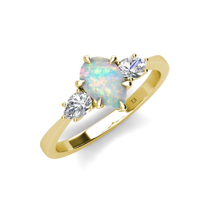 Naomi 9x6 mm Pear Shape Opal and Diamond Three Stone Engagement Ring
