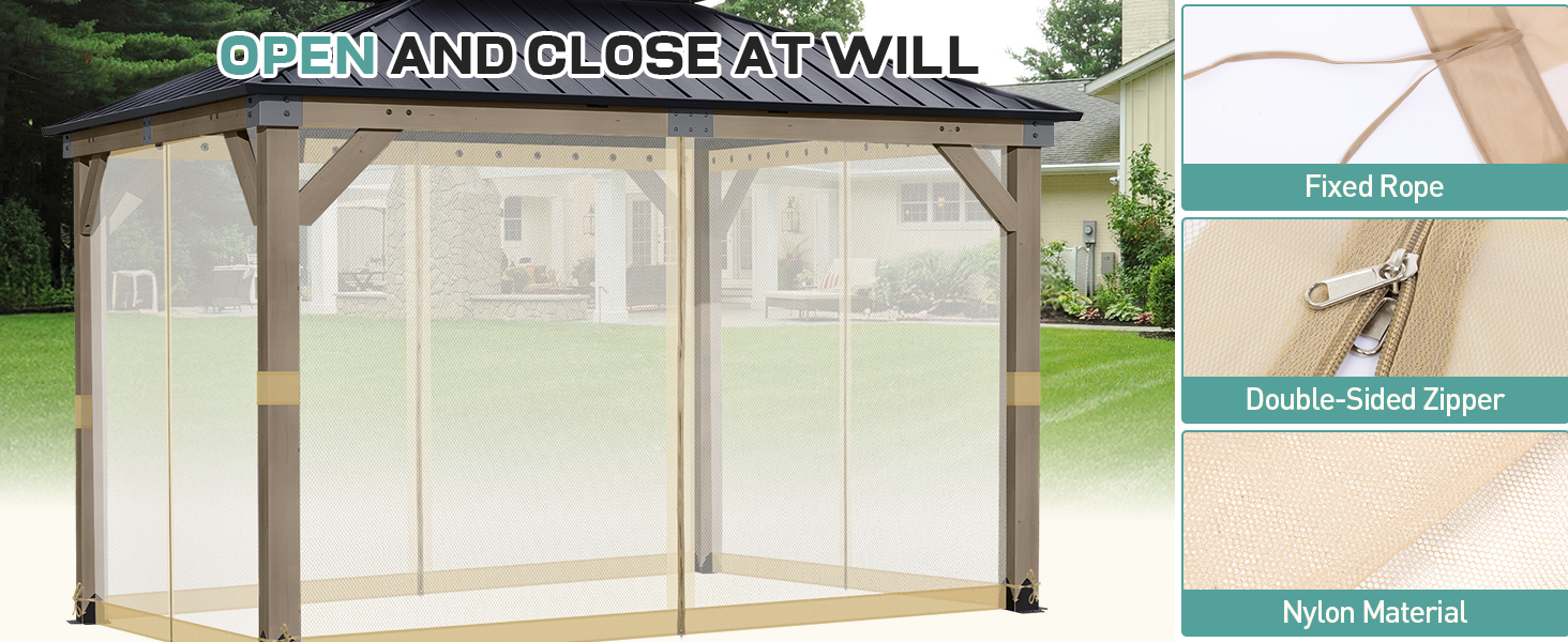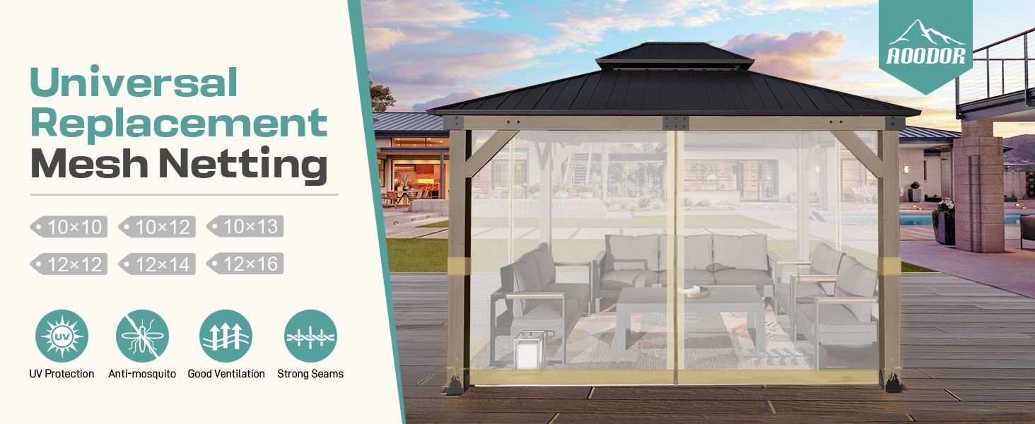 【Upgraded Protection】 - The upgraded gazebo replacement netting has been specially treated with insect repellent ingredients that release odors to effectively protect against mosquitoes and other pests