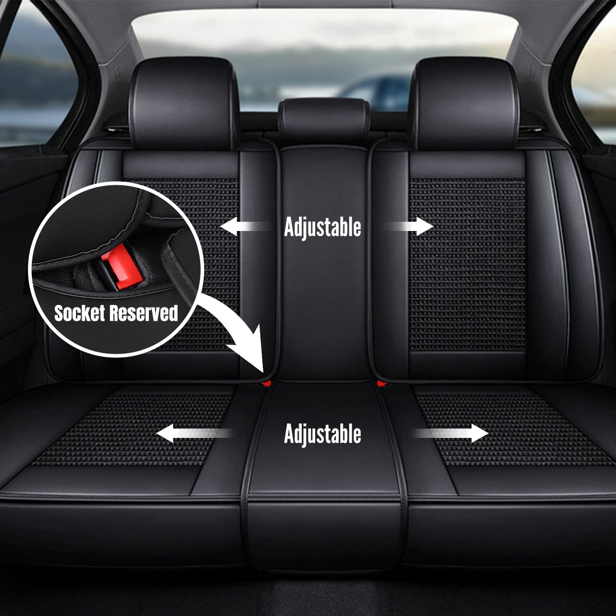 7.Adjustable and detachable rear bench, free to for different seat sizes. Universal for most 5-seat cars, SUVs, trucks and vans.