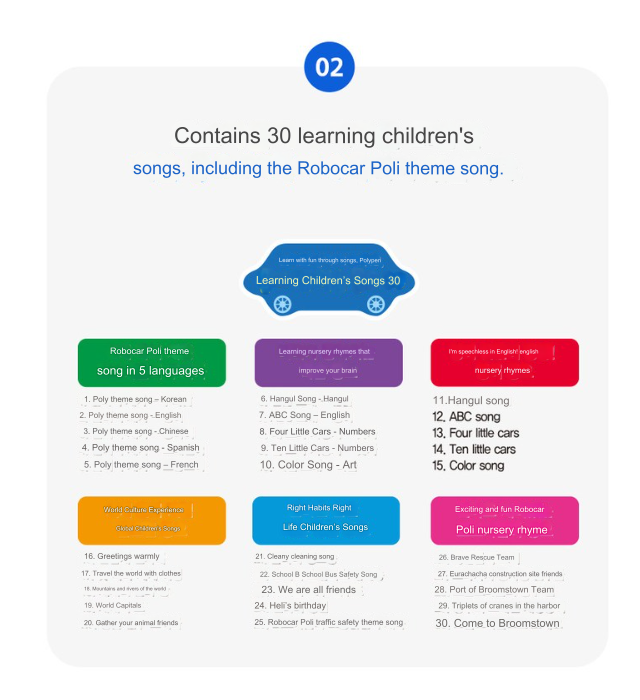 Contains over 2000 essential early childhood vocabulary and 30 learning nursery rhymes.