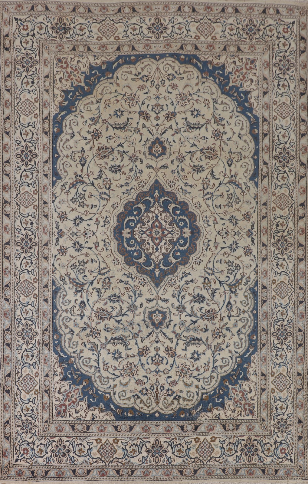 Vintage Floral Ivory Nain Traditional Rug 6'x10' Wool Hand-made Living Room Rug