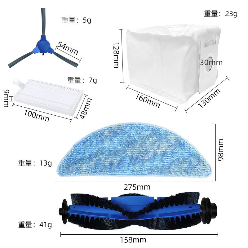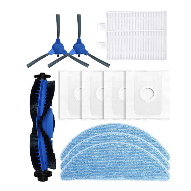 1 main brush + 2 side brushes + 2 filters + 2 rags + 4 dust bags