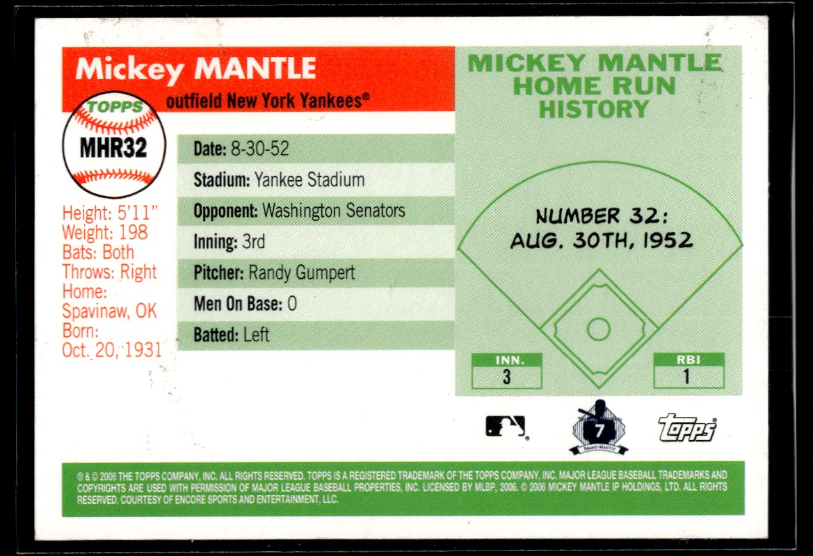 Mickey Mantle 2006 Topps Mickey Mantle Home Run History #MHR32 Yankees