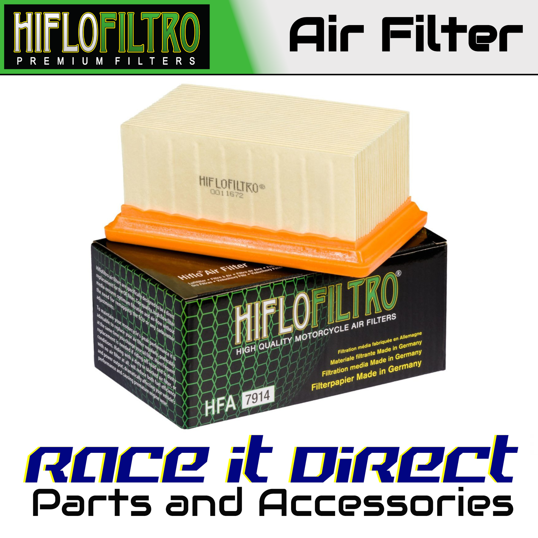 Hiflofiltro air filters are manufactured to fit the factory air box and are a direct replacement for original equipment filters. Top quality powerflow filtering media, developed for modern high performance engines.