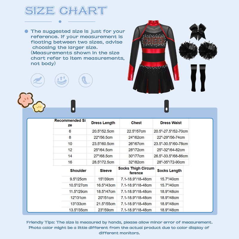 Suitable for cheerleading dance, school performance, competition, stage performance, masquerade, theme party, etc.