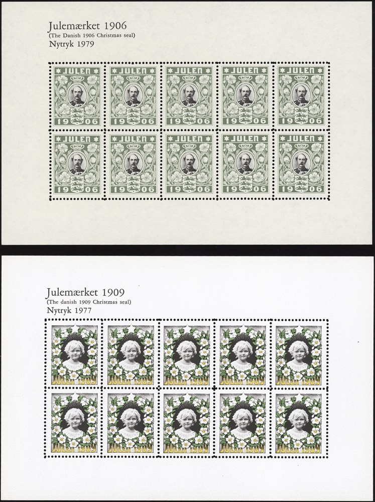 Denmark, 1979-1982. . TB Seals, Official Reprints 1904-1917, Green 1-17. Reverse with Nytryk Reprint overprint. (17) Mint, OG, NH. F-VF.