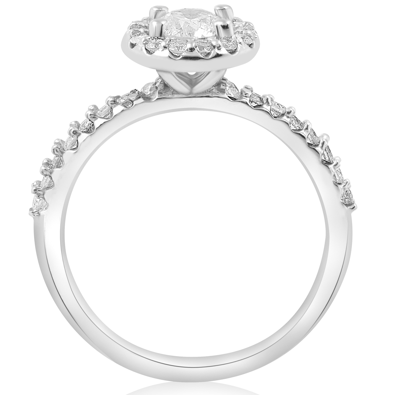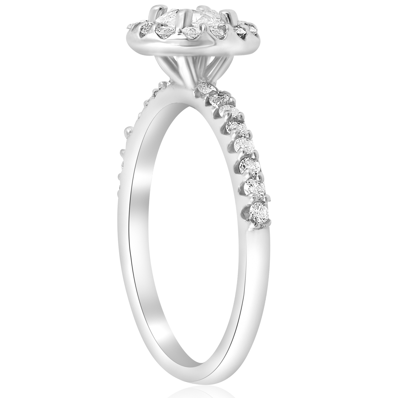 1 ct Halo Diamond Engagement Ring 14k White Gold Single Ro