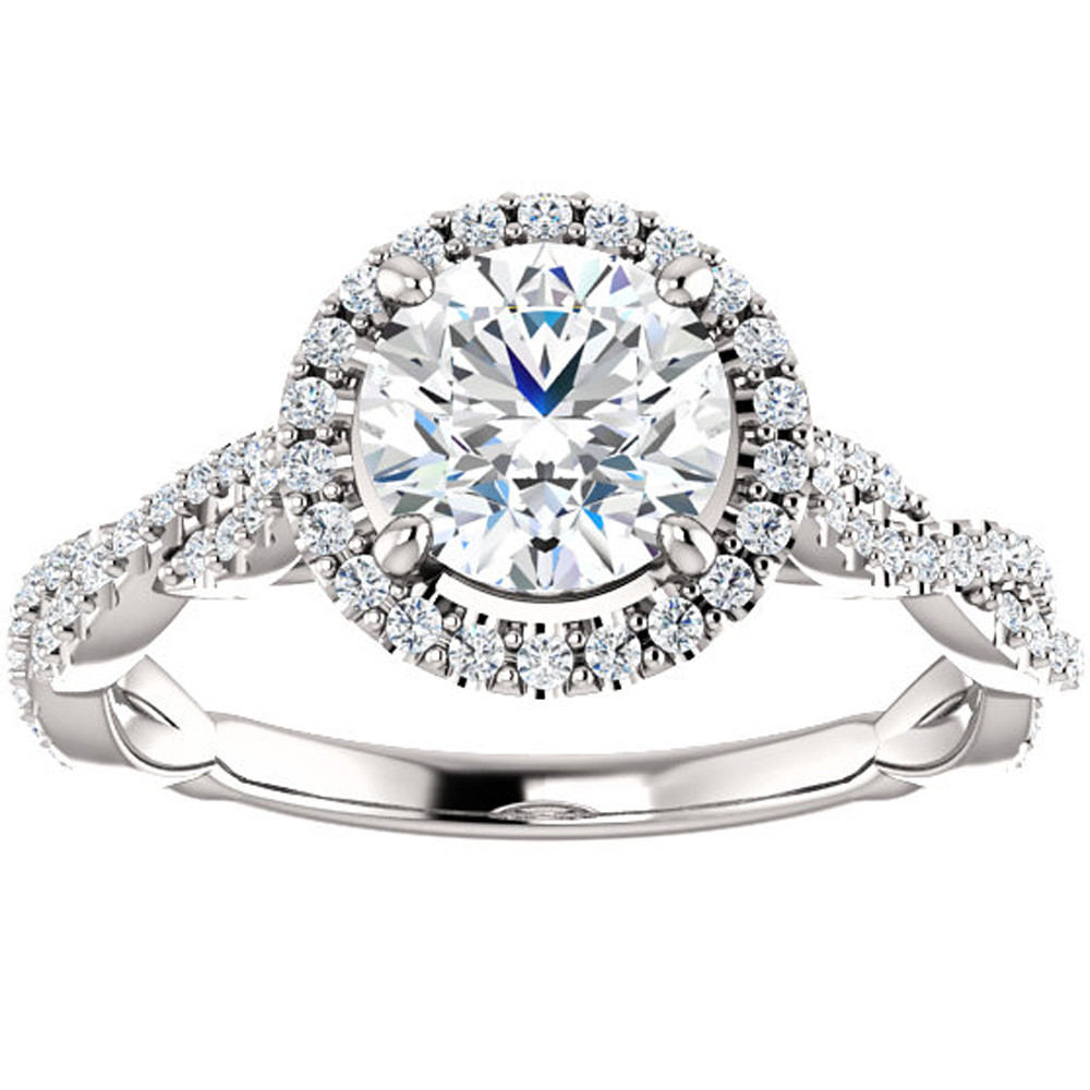 F/VS 1.33ct Diamond Halo Interwoven Engagement Ring 14k White Gold Lab Grown
