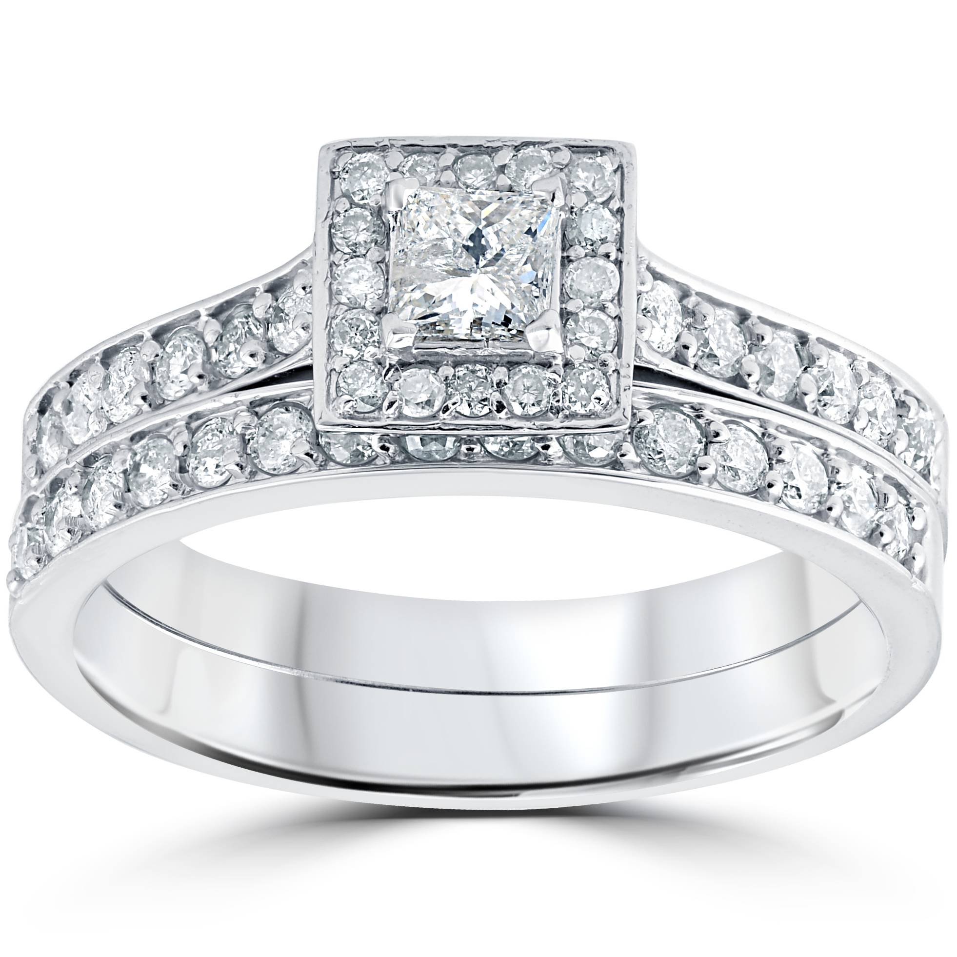 3/4 cttw Princess Cut Diamond Halo Engagement Wedding Ring Set 10K White Gold