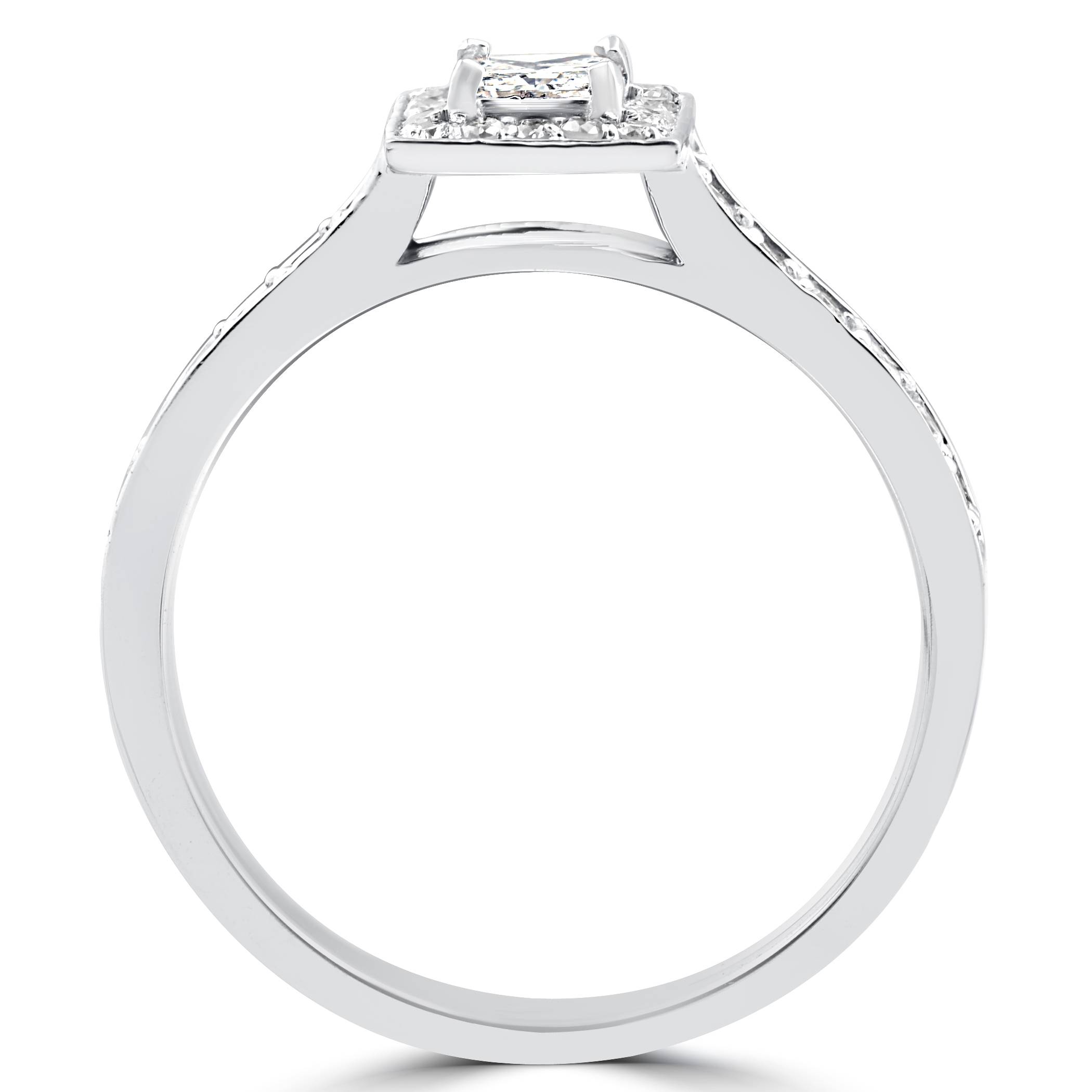 This women's ring set features a 1/4ct princess cut center and 43 accent diamonds set in solid 10k white gold.