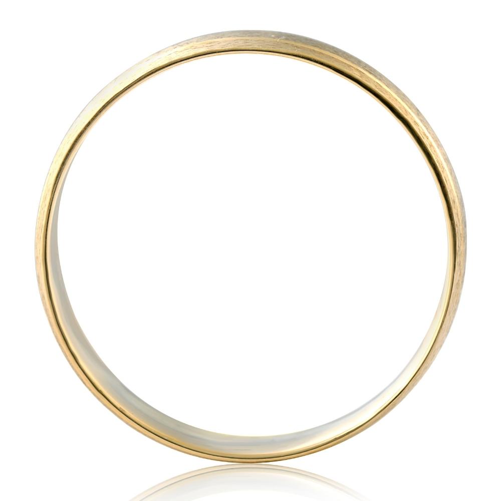 This classic men's two tone wedding band features a brushed white gold center and brightly polished yellow gold edges. The inside edge is rounded to give your finger more comfort during normal wear.
